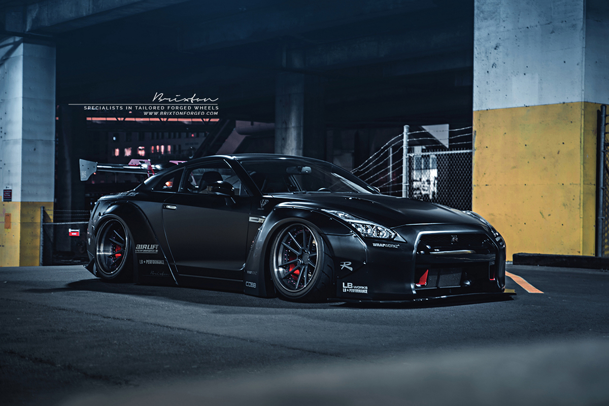 The two stars of the show were a Liberty Walk Nissan GT-R and Ferrari 458 Italia, each strapped with a new set of Brixton Forged wheels and all sorts of other sinister goods that go bump in the night.
