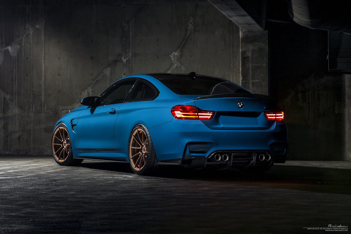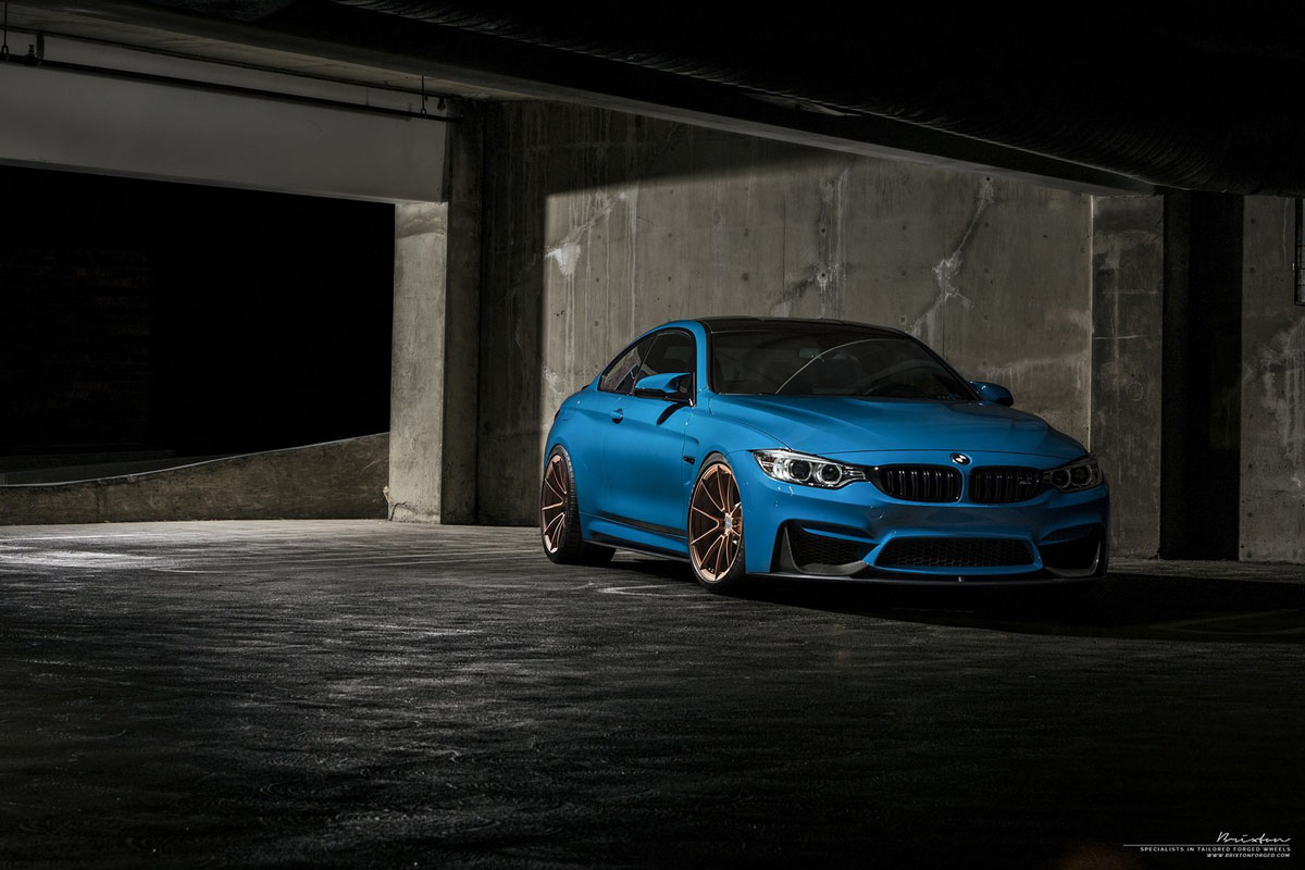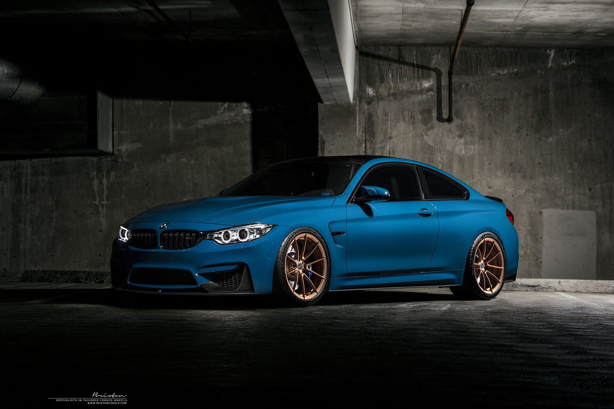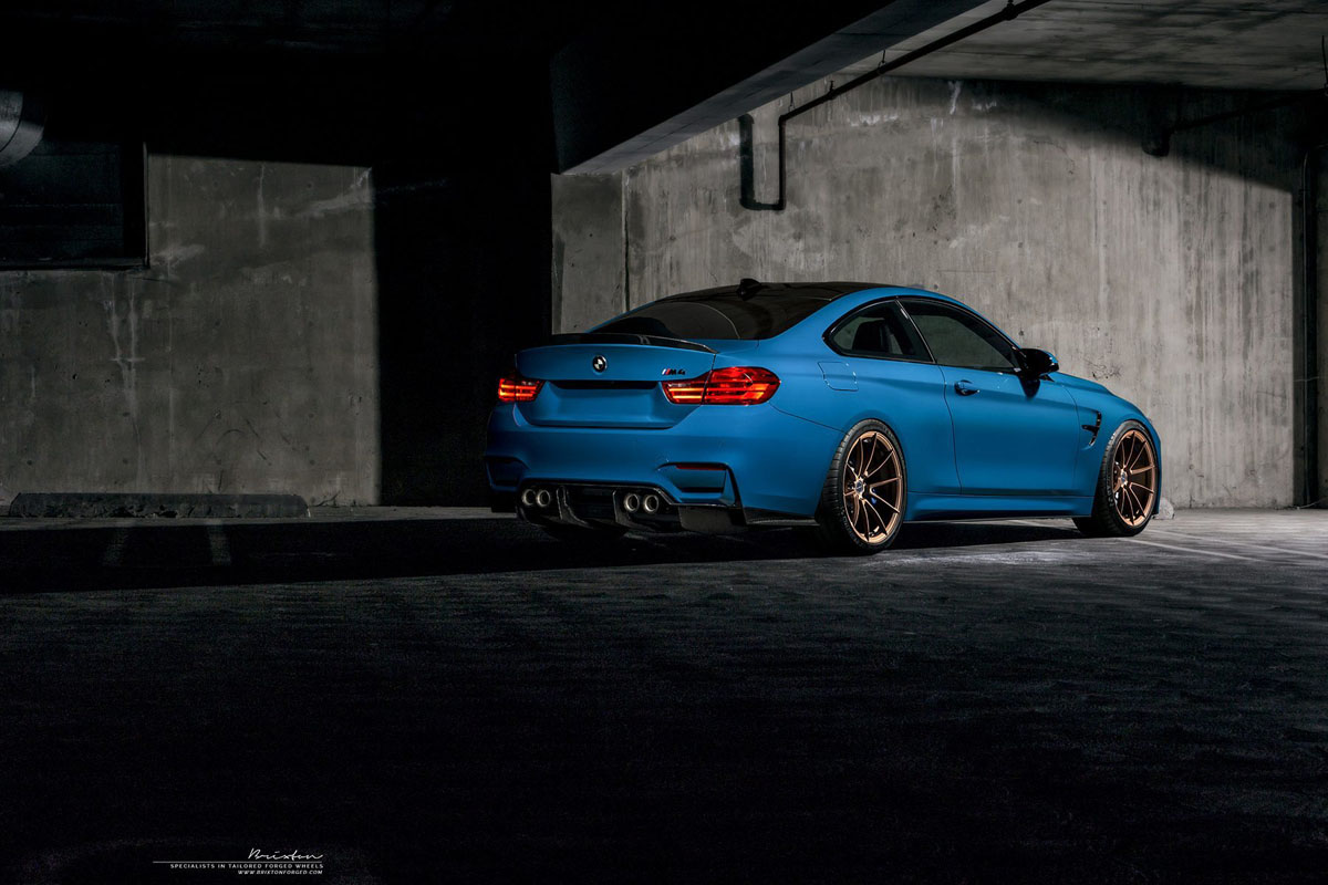 Do you like the contrasting colors of this Laguna Seca Blue BMW M4 with Rose Gold Brixton Forged WR3 Ultrasport+ Wheels?