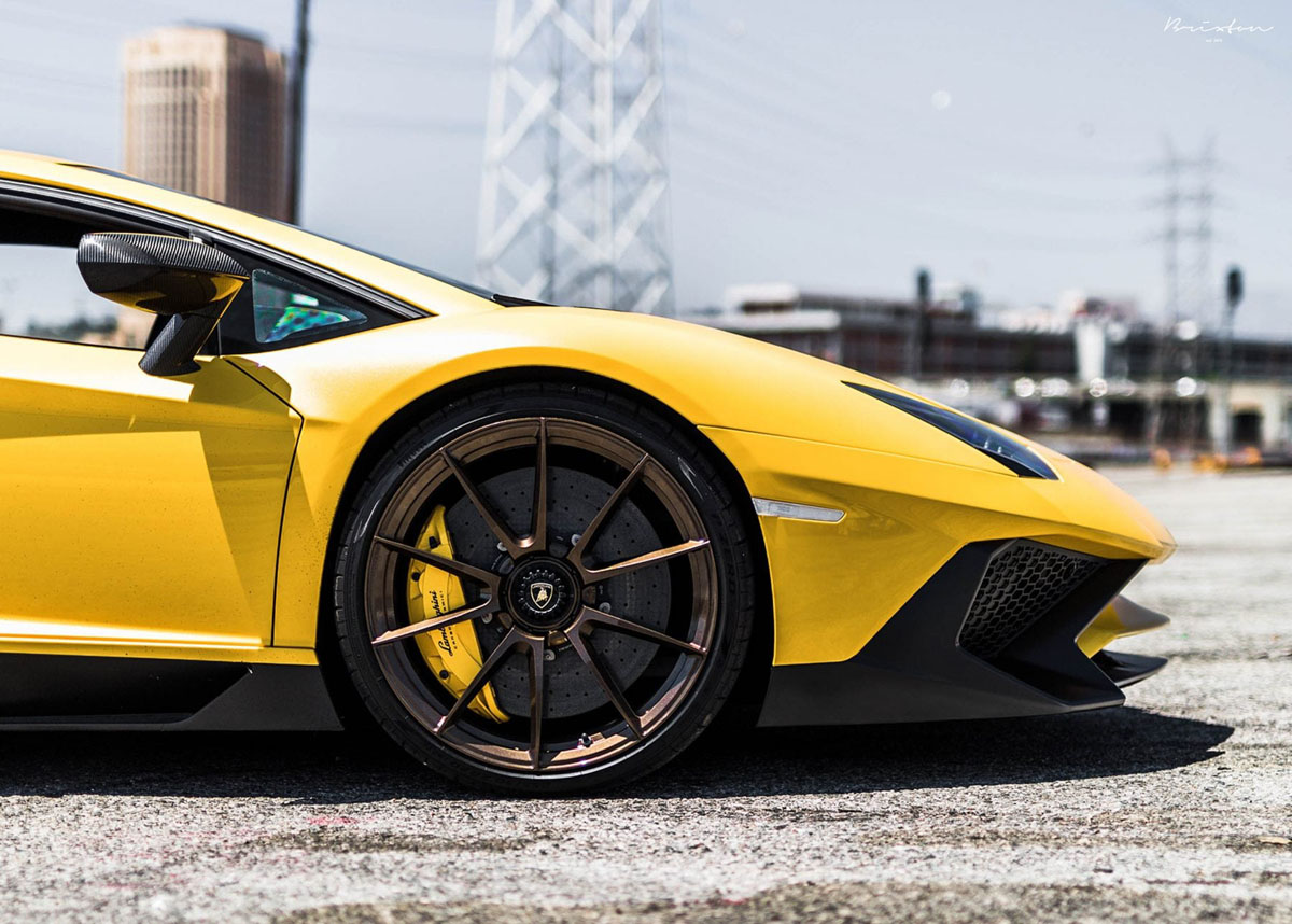 This fitment stars the new Brixton Forged WR3 Ultrasport+ wheels in an OEM+ 20 x 9.0 front and 21 x 13.0 rear fitment that allow for the factory tires to be used with flush to fender offsets. The multi-spoke, sharp-angled design of the WR3 Ultrasport+ wheels looks right at home on the Aventador LP 750-4 SV with the center-locking hardware and the progressive concave from the front to the rear. A contrasting Metallic Forged Bronze color with Gloss Clear finish provides just enough contrast with a custom touch.