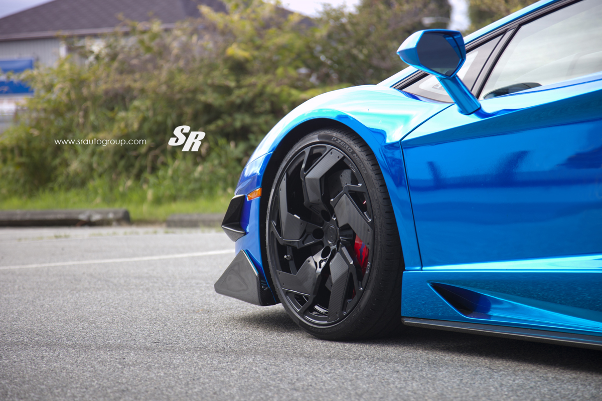 Lamborghinis have always been flashy, showy and spectacular with their styling and design. They are raging bulls that demand attention. This cool blue Aventador has been transformed by the team at SR Auto Group into a sharp head-turner with a full PUR carbon fiber Aero kit and a new set of PUR RS05.V2 limited edition forged wheels.