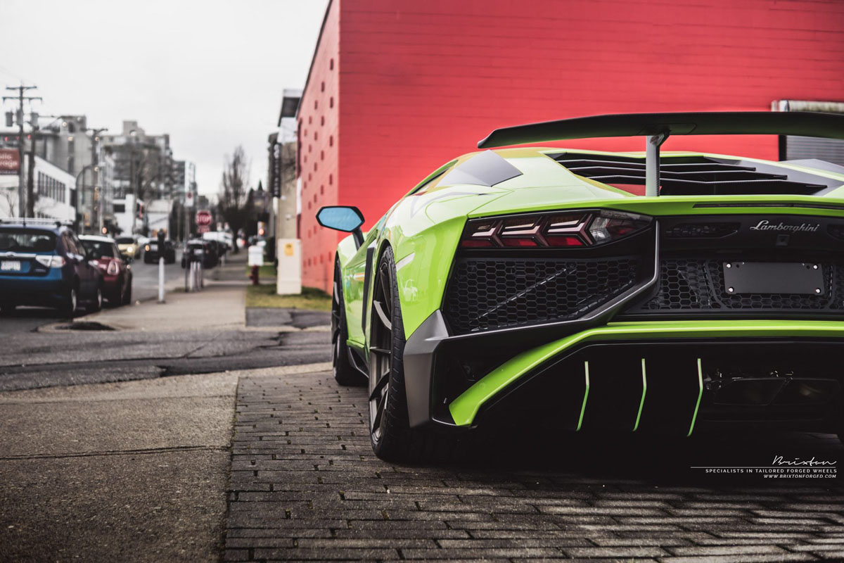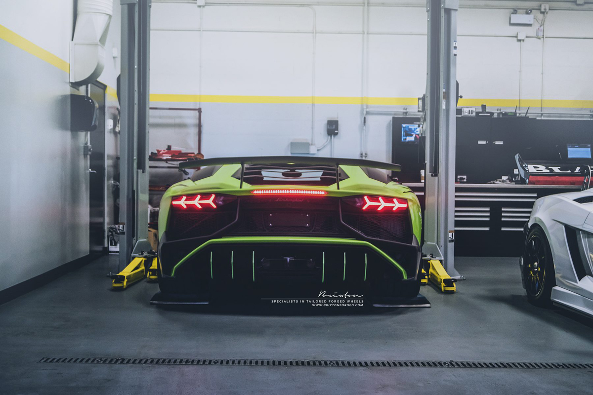 The Lamborghini Aventador LP 750-4 SuperVeloce is the ultimate, hardcore performance version of the model line. If you want a car that will give you that white-knuckled driving experience every time you hit the throttle, look no further than the SV. A Verde Ithaca Lamborghini Aventador SV was at the Lamborghini Vancouver dealership and got quite the lightweight surprise with a new set of Brixton Forged WR3 Ultrasport+ wheels.