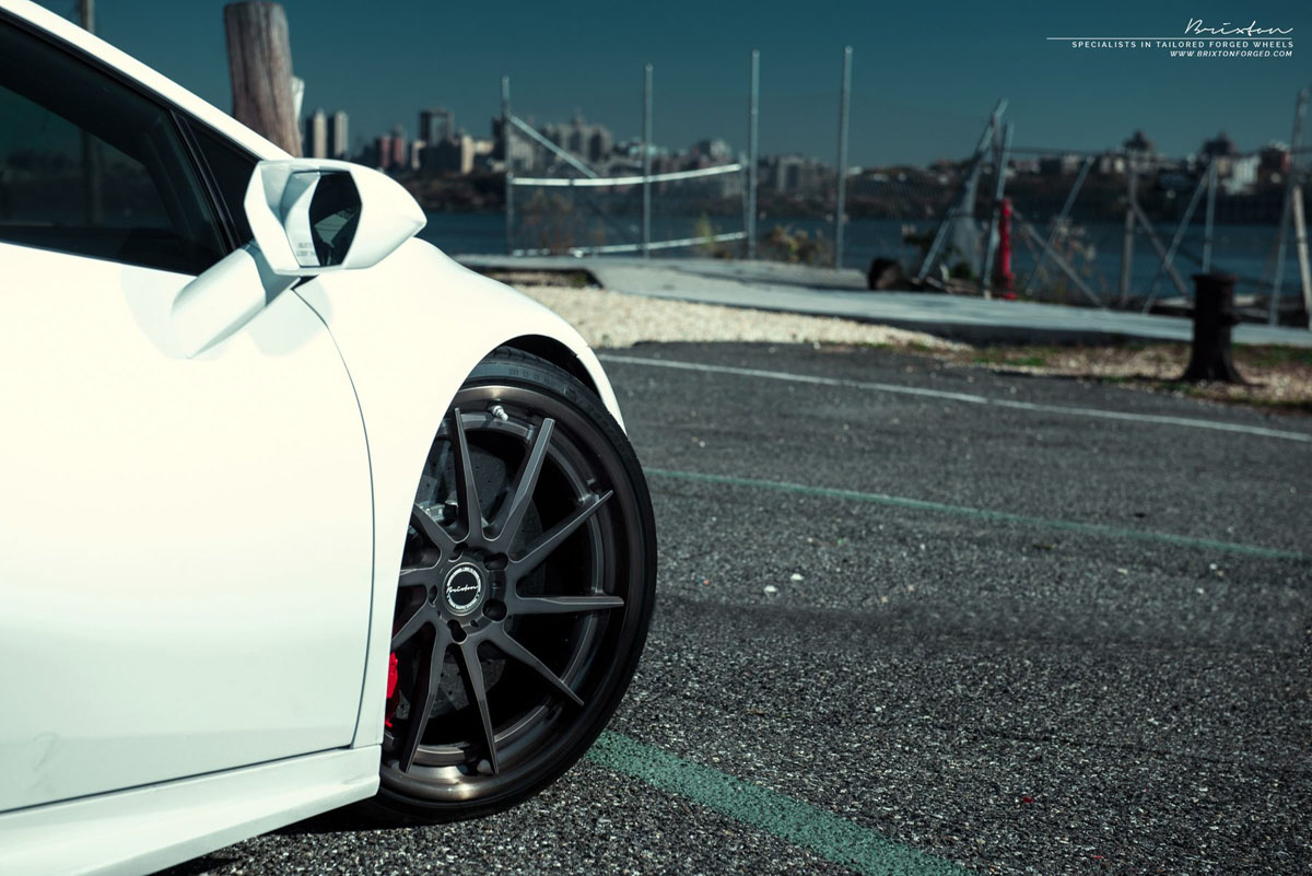 Making the new Brixton Forged R10D Targa Series stand out even more is the Brushed Smoke Black color of the wheels that wears a matte finish on the face and gloss finish on each lip. This contrasts the vibrant Bianco White body and, with the hidden hardware option, creates a clean look.