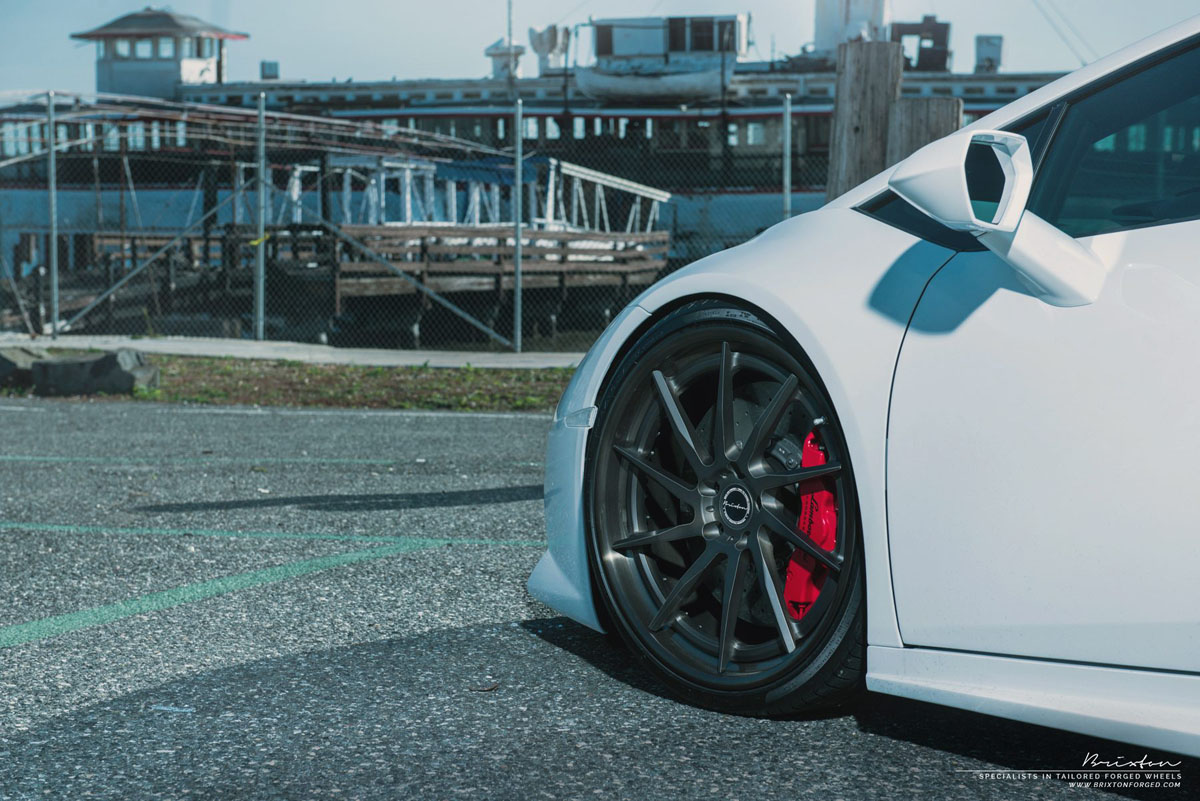 This Featured Fitment sees the Brixton Forged R10D Targa Series wheels installed in a staggered 9.0 x 20 front and wide 12.5 x 21 rear setup. The directional 10-spoke design fits in perfectly with the sharp curves of the Huracan’s body work and visually portray the speed and power of the super car.