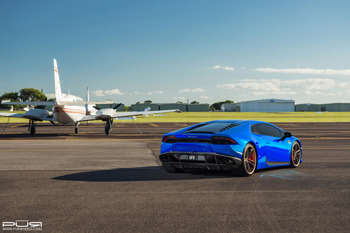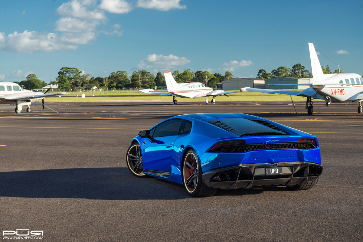 Armed with the new PUR LX14 forged wheels and chrome blue wrap, this Huracan will draw just as much attention as a UFO on the runway and on the streets.
