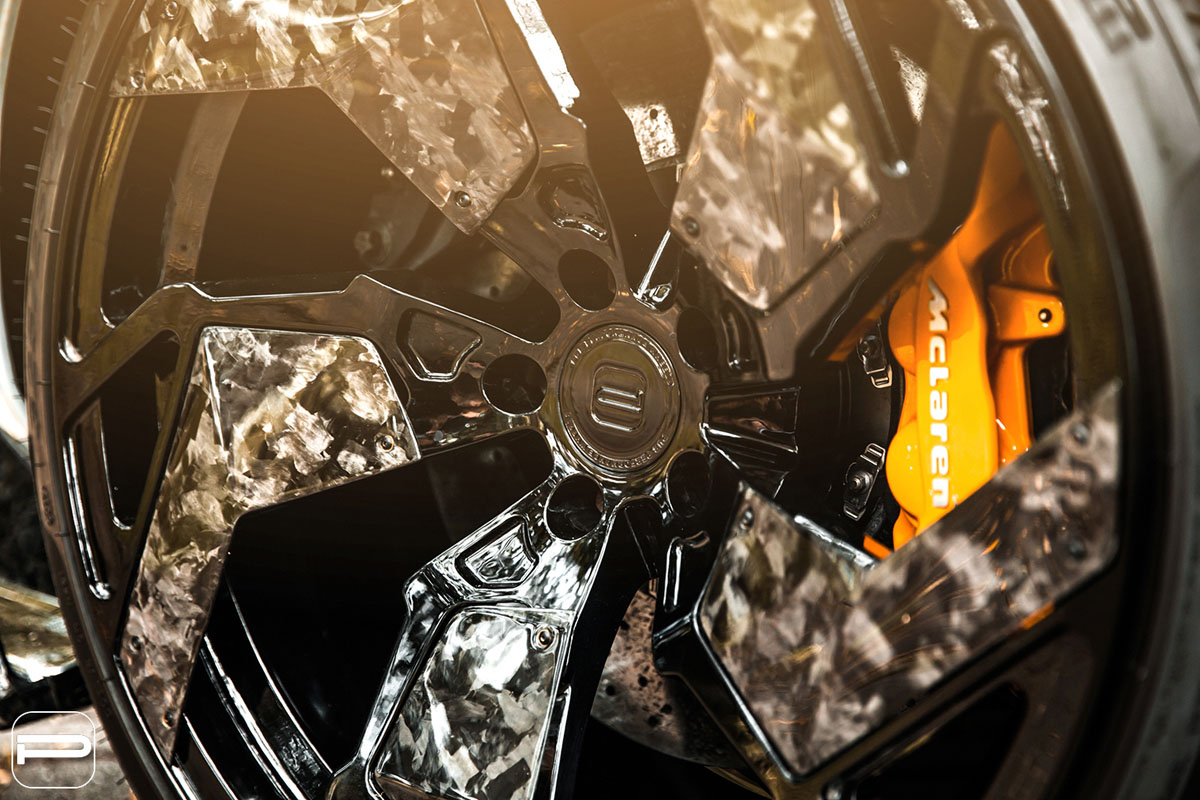 Premier Autowerkz contacted PUR Wheels for a set of forged alloys that could match the extraterrestrial look of the McLaren 720S. Thankfully, much of the 720S’s wheel hub specs lined up with that of the Lamborghini Huracan, allowing them to customize a set of their limited-edition PUR RS05.V2 wheels. These wheels, limited to just 25 sets, feature a five blade-like spoke pattern with customizable carbon fiber inserts. The forged wheels feature a deep concave profile and emphasize speed, power, and confidence on the road – making them perfect for this 720S build.