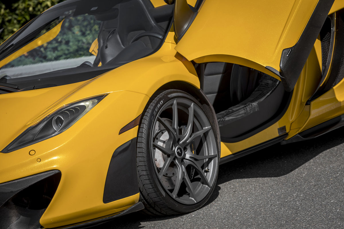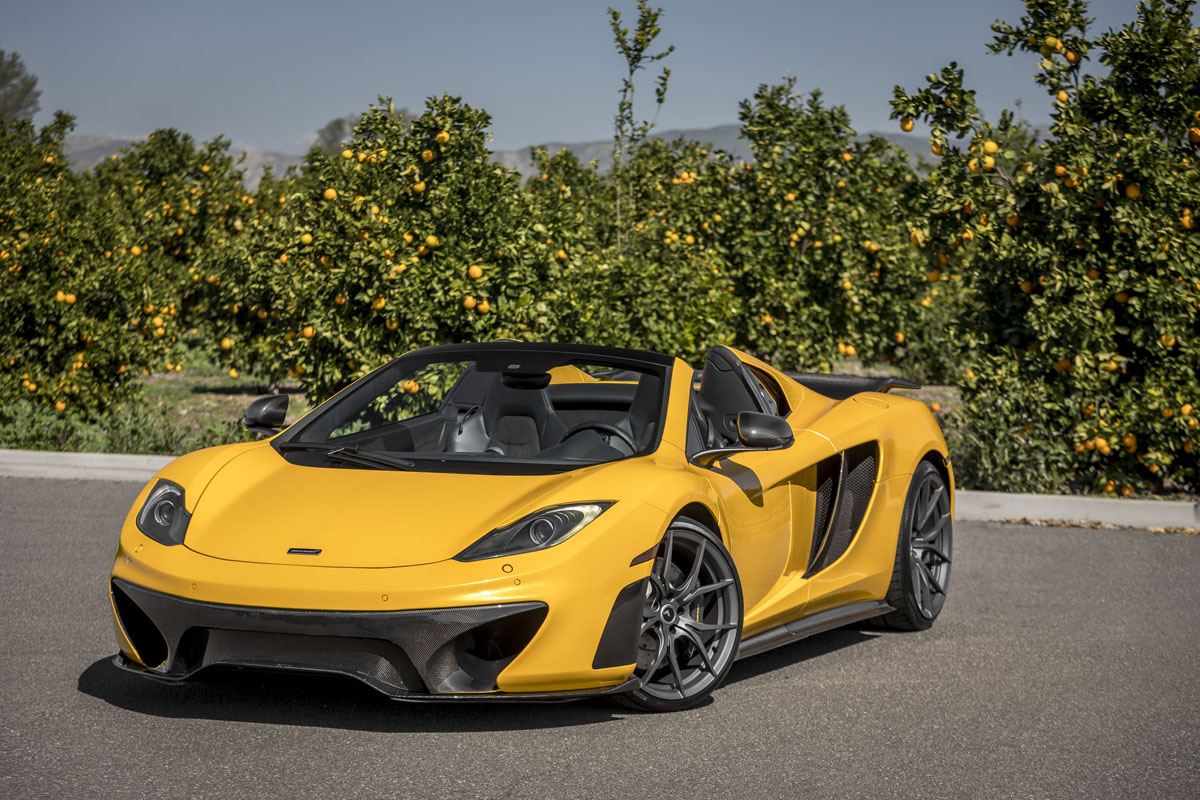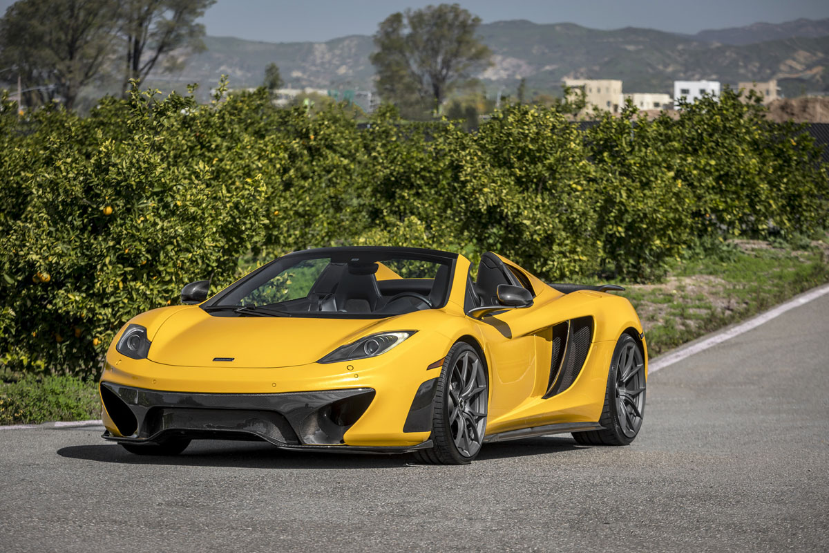 Starting things off with this stunning Volcanic Yellow McLaren MP4-12C Spider is a full Vorsteiner MP4-VX aero program. Here, lightweight carbon fiber accentuates many of the lines and improves aerodynamics without adding unnecessary weight.