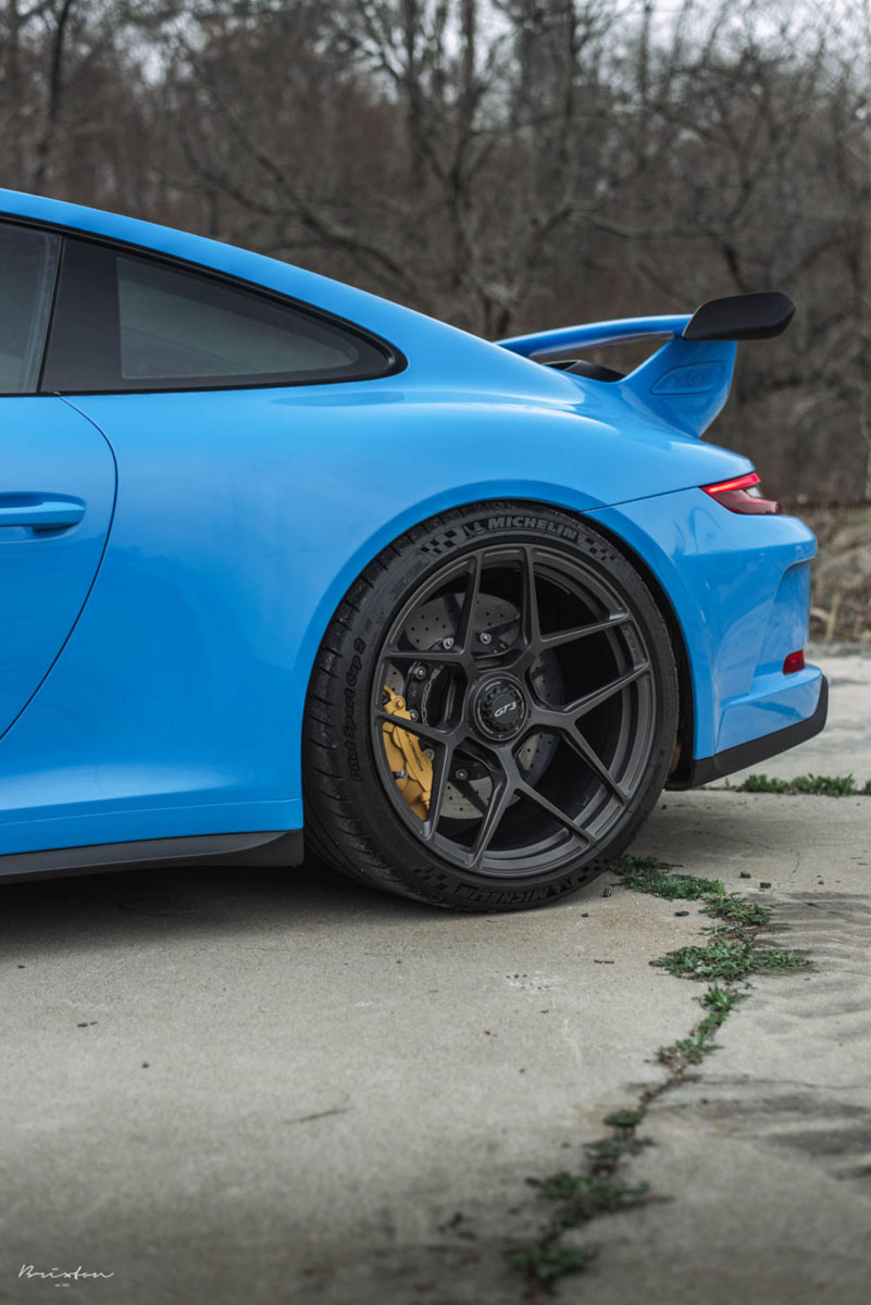 The Porsche 911 has many variants and special editions to satisfy just about any driving style. There’s the standard Carrera and Carrera S models for some fun, Targa for cruising, Turbo for high-performance luxury, and the GT3 for the track-focused driver. This Mexico Blue 991.2 Porsche 911 GT3 is made to surgically dissect a track with a high-revving scalpel and it got even better with a new set of lightweight Brixton Forged PF7 Ultrasport+ forged wheels.