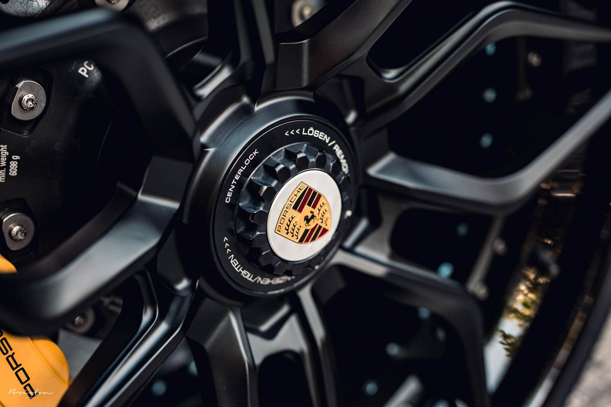 So, the team at KBH / Import Hookup decided to go with Brixton Forged’s newest PF9 Targa Series wheels for the Racing Yellow 911 Turbo S. These three-piece forged wheels feature a step-lip style with an exotic star-shaped spoke pattern coupled with a concave profile. This creates a complex, eye-catching design that pairs well with the otherworldly performance of the Porsche 911 Turbo S while also offering high-strength and low-weight characteristics.