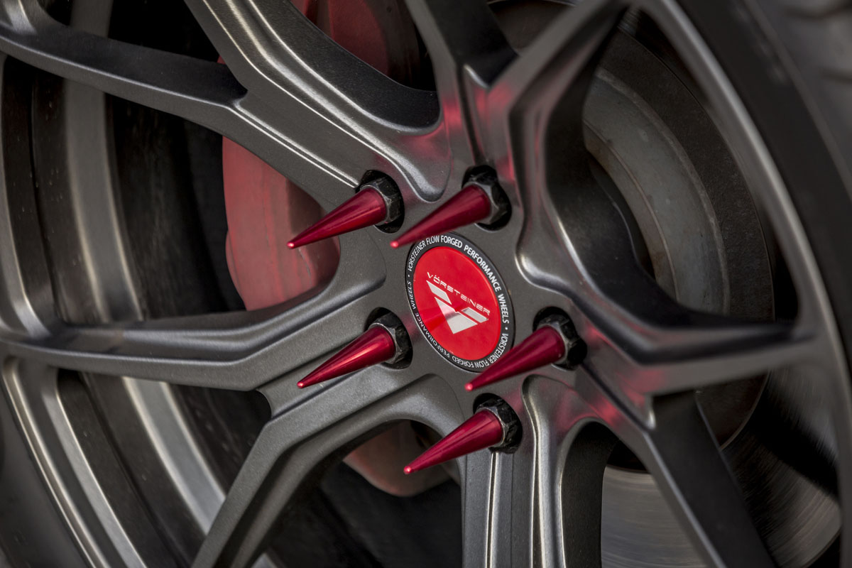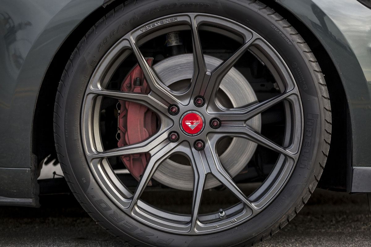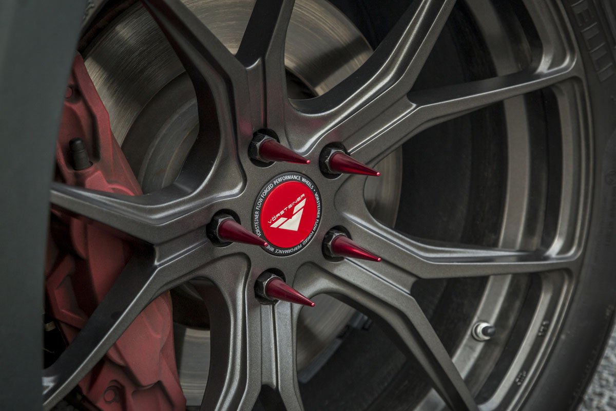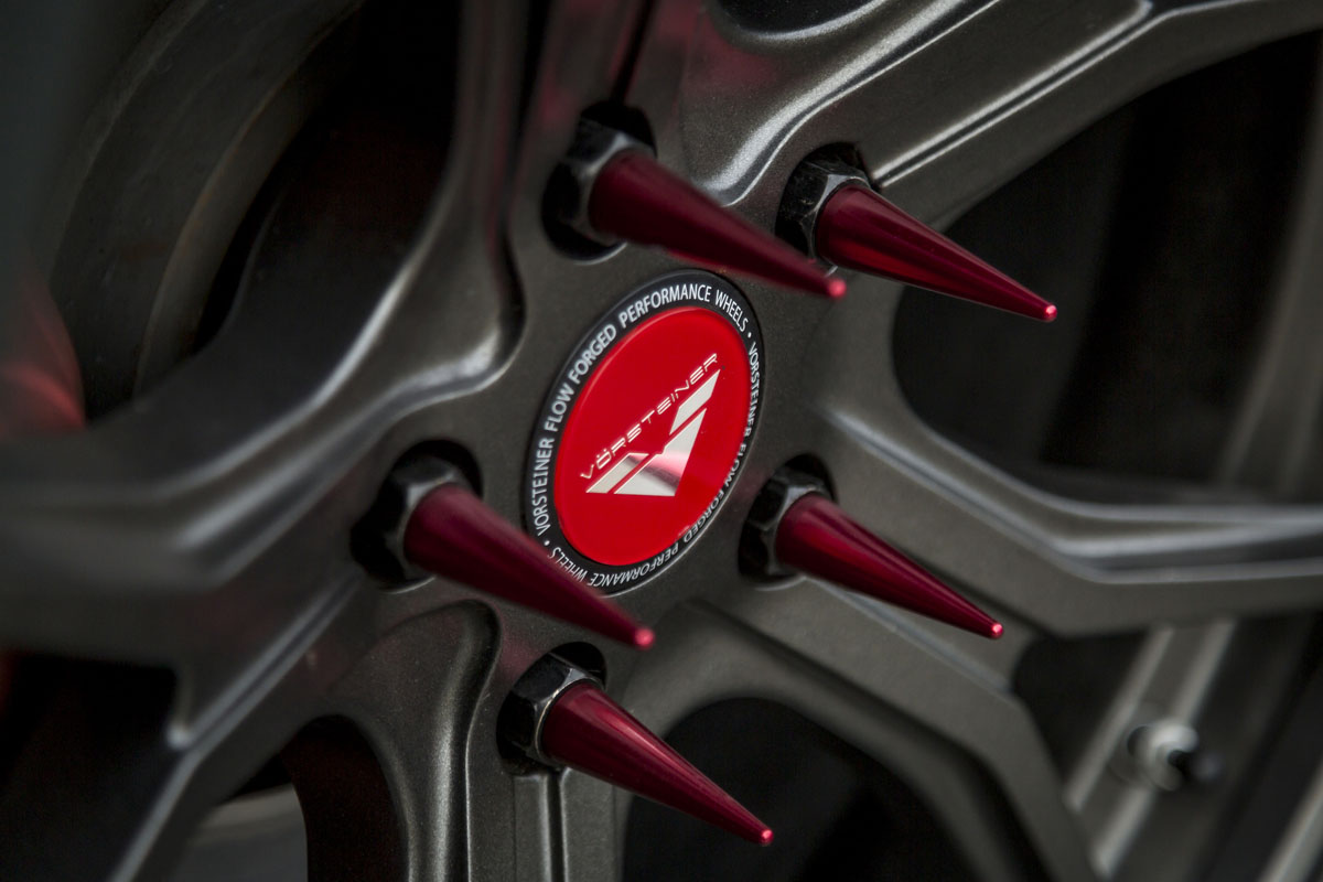 To tie it all together and handle the rubber-painting V-8 engine, a new set of Vorsteiner V-FF 103 flow forged wheels were added. The alloy wheels feature a concave five-spoke design that splits into a Y-shape as it moves towards the edge of the rim.