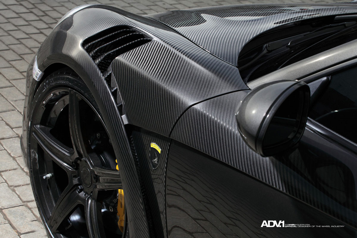 The step-lip ADV5 M.V1 SL Monoblock wheels also have a Liquid Smoke finish that perfectly matches the carbon fiber body work of the TOPCAR Porsche 911 Stinger while the monoblock forged alloy construction keeps with the lightweight performance theme.