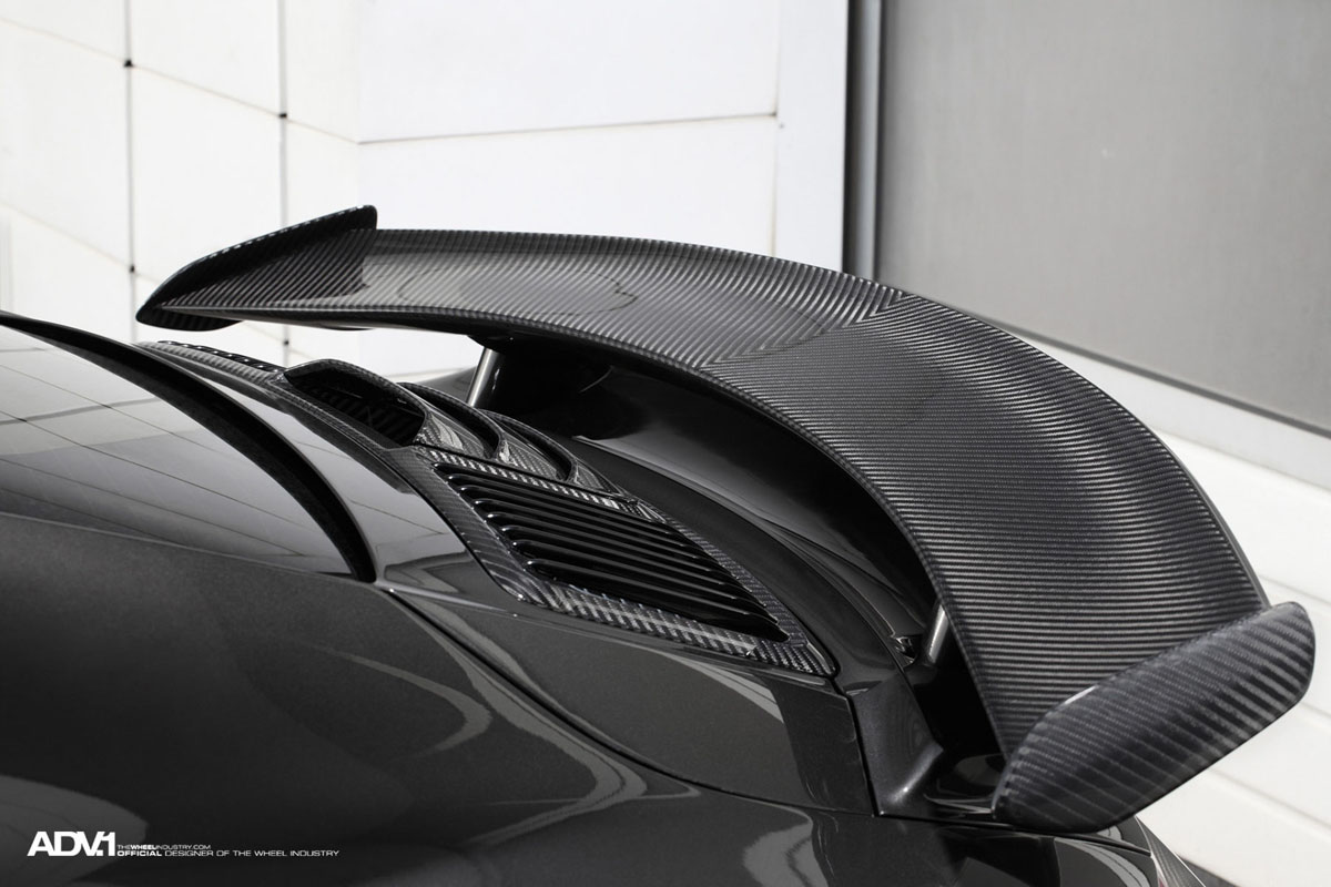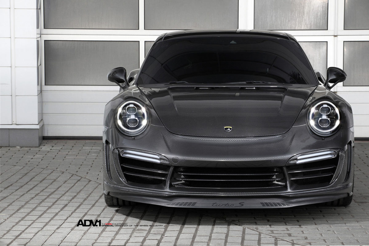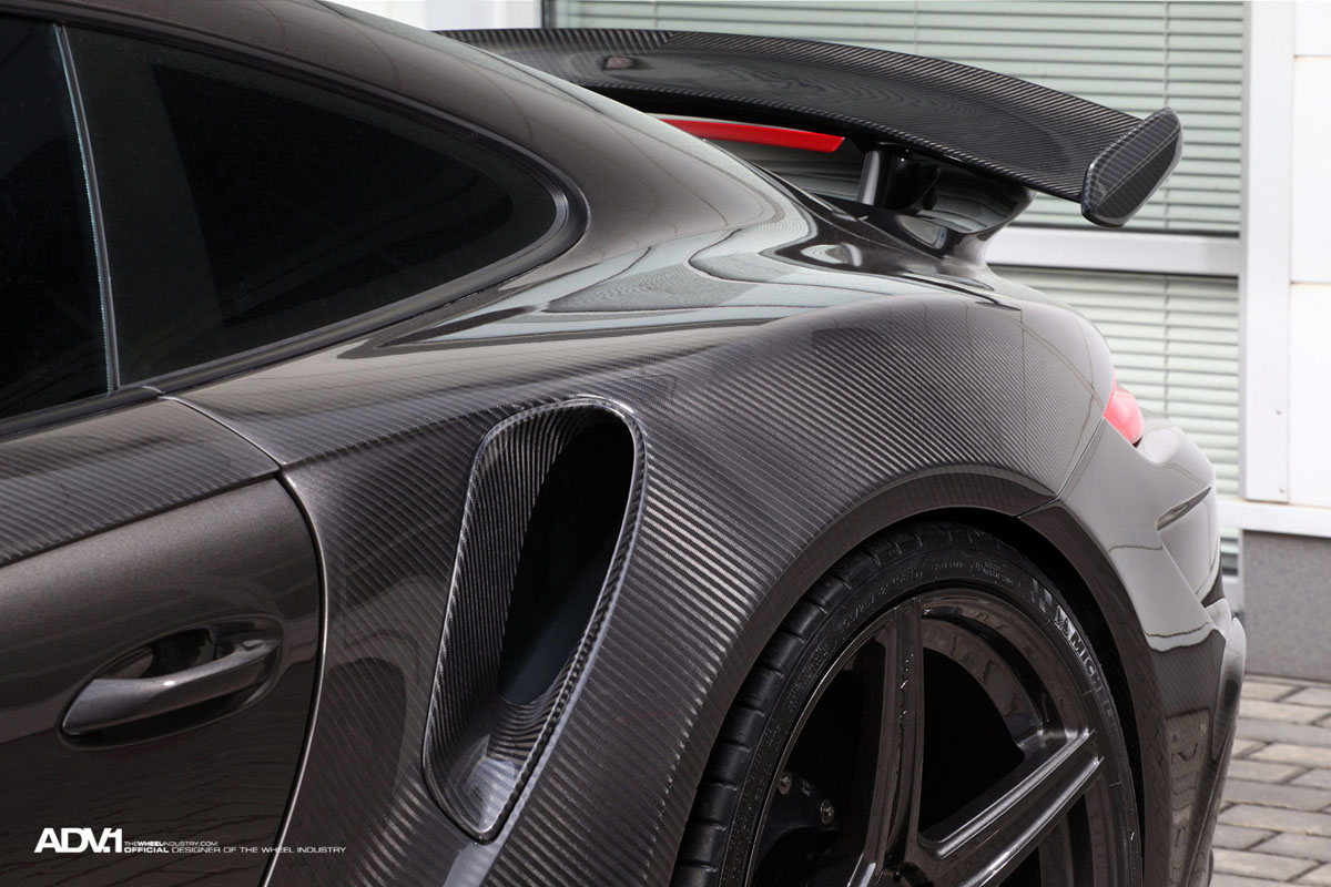 The step-lip ADV5 M.V1 SL Monoblock wheels also have a Liquid Smoke finish that perfectly matches the carbon fiber body work of the TOPCAR Porsche 911 Stinger while the monoblock forged alloy construction keeps with the lightweight performance theme.