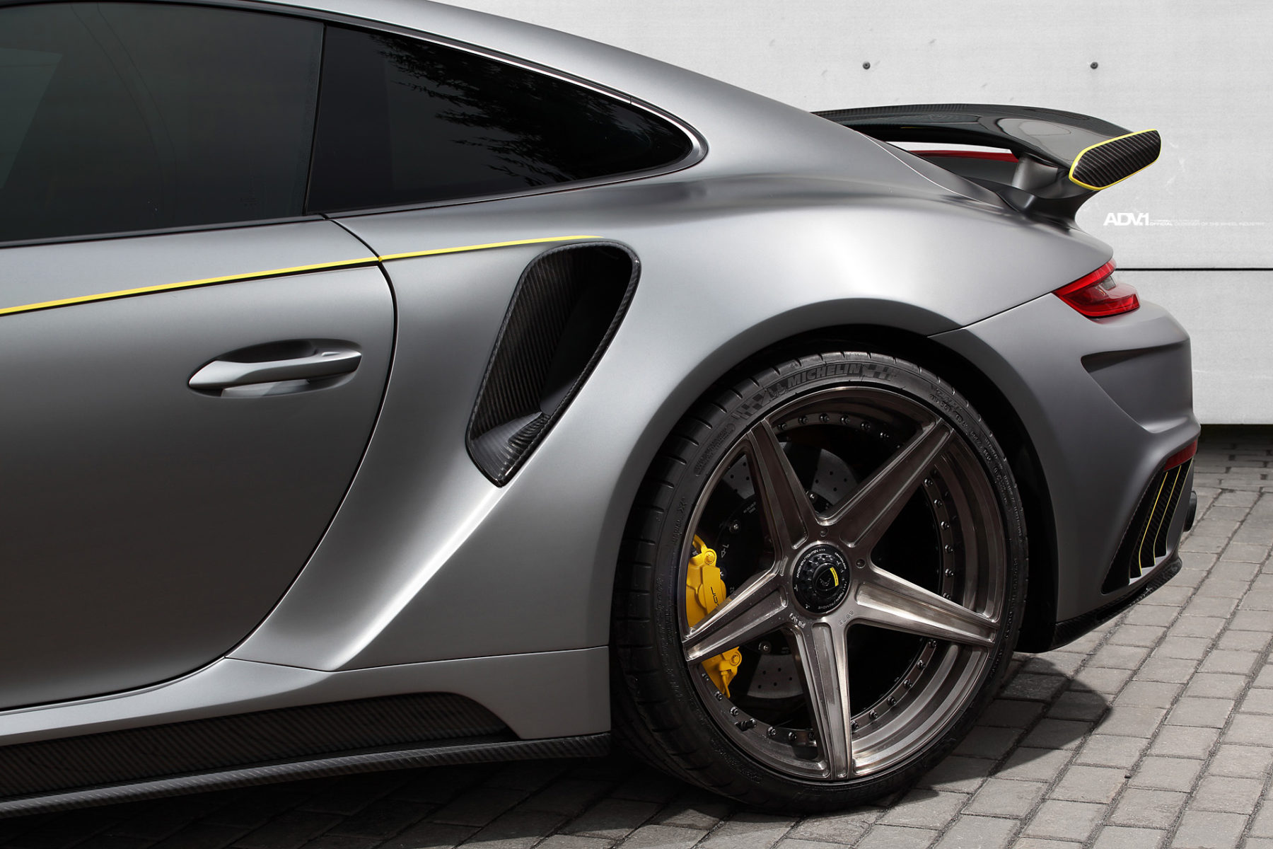 The part that brings it all together are the new ADV.1 ADV5 M.V2 SL Series wheels. These two-piece forged wheels boast a center-lock construction and concave five-spoke design that gets progressively deeper from front to the rear. The new ADV5 M.V2 SL Series wheels also clear the Porsche Ceramic Composite Brake system, which allows for a more aggressive fitment.
