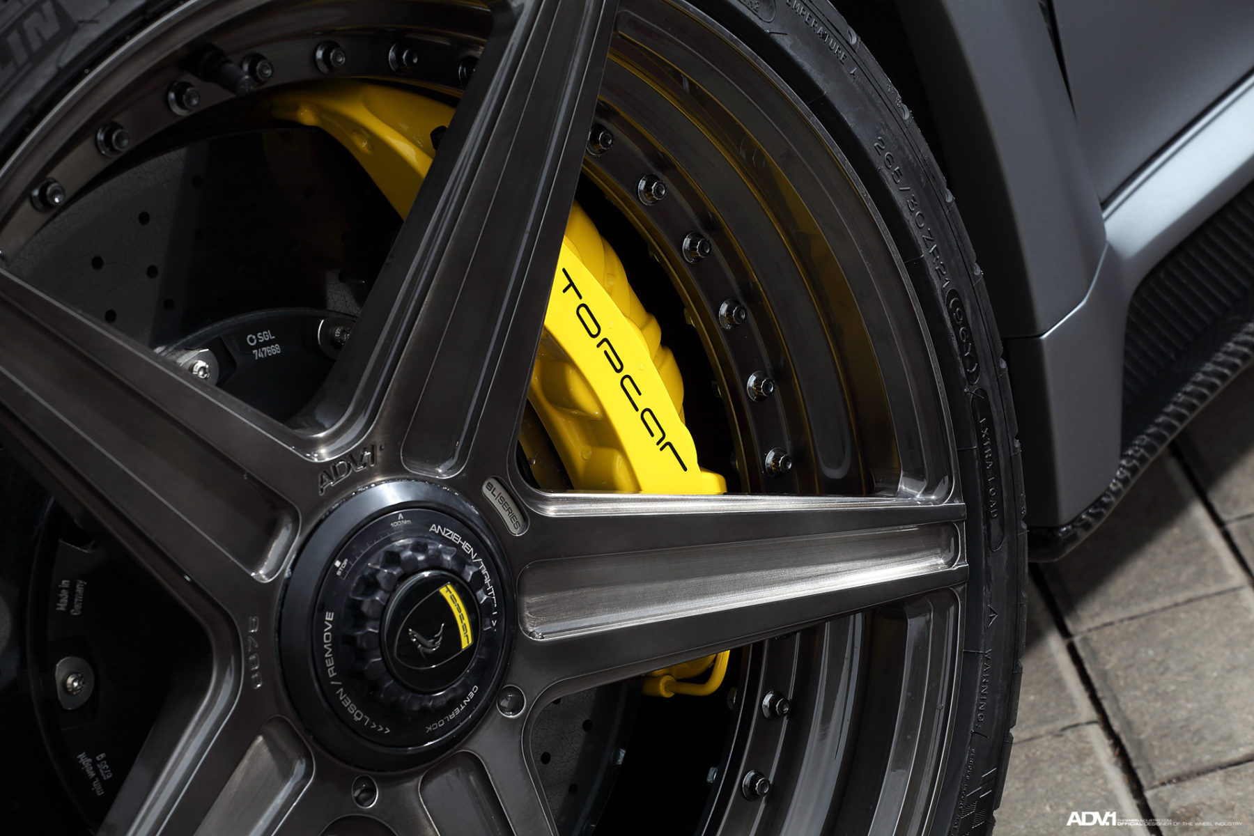 On the TOPCAR 911 Stinger GTR, the ADV5 M.V2 SL Series wheels were installed in a staggered 21 x 9.0 front and 21 x 11.5 rear setup. Each wheel proudly displays a Liquid Smoke finish and features an Exposed Hardware option that provides an eye-catching element for the detail oriented.