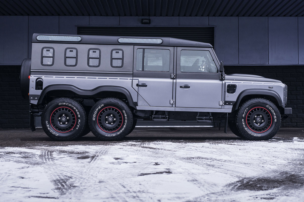 Based on the Land Rover Defender 110, the new Flying Huntsman 6X6 Civilian Carrier is a six-wheeled monster throwing down serious capability and filled with opulence. It’s a lesson in power and function with its nine-passenger seating that is at home in virtually any setting from the swank to the rugged.