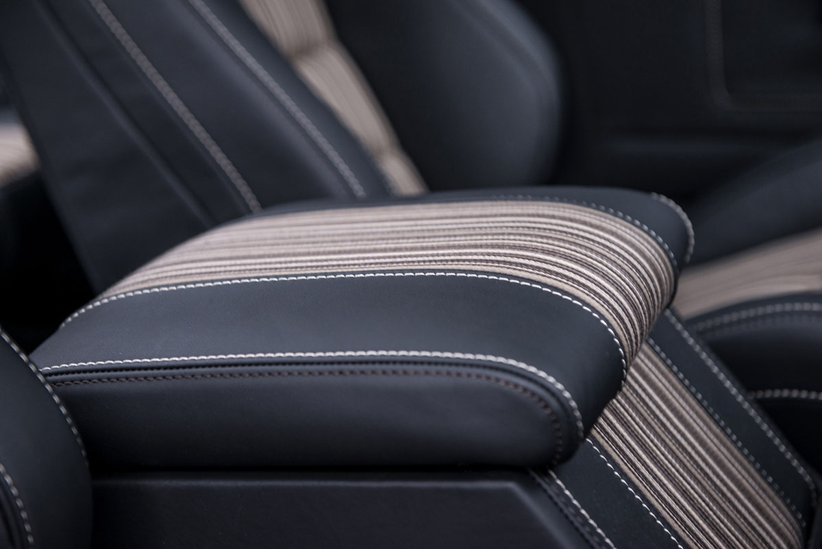 Behind the tinted glass and armor-like cabin, there’s room for up to nine passengers. The Flying Huntsman 6X6 Civilian Carrier boasts nine Kahn quilted seats that adjust in a variety of ways and feature multi-density foam for better comfort and flexibility. Each seat can even extended forward for better thigh support and feature leather with Hield fabric inserts. Both of the front passengers, however, benefit from heated GTB sport seats with the same upholstery pattern.