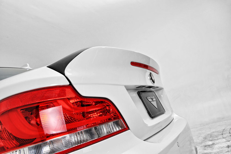 The new Vorsteiner GTS-V wears all-new aerodynamic components made from pre-preg carbon fiber to ensure maximum quality and fitment along with an overall low weight and high-strength stability. The front bumper of the 1 Series M Coupe wears a front spoiler lip with integrated brake duct collectors to cool the front brakes, and special UV protective coating. The standard rear bumper on the Vorsteiner GTS-V was fitted with a new diffuser with extended aero fins and dual splitter design for high-speed stability. The new kit is finished off with a new trunk lid that effectively replaces the stock unit and weighs in at only 11.5 lbs. while adding a touch of downforce to the rear axle.