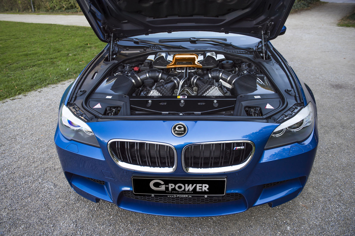 The appetizer from G-Power is a choice of their Bi-Tronik 5 V1 performance module or Bi-Tronik 2 V1 bespoke software tune. The former uses a microprocessor-controlled module that functions as a plug-and-play unit, while the latter is a custom software remap that tuned specific aspects to the customer’s wishes. No matter which option the customer chooses, the BMW M5 is capable of producing 650 horsepower and 612 lb-ft. of torque.