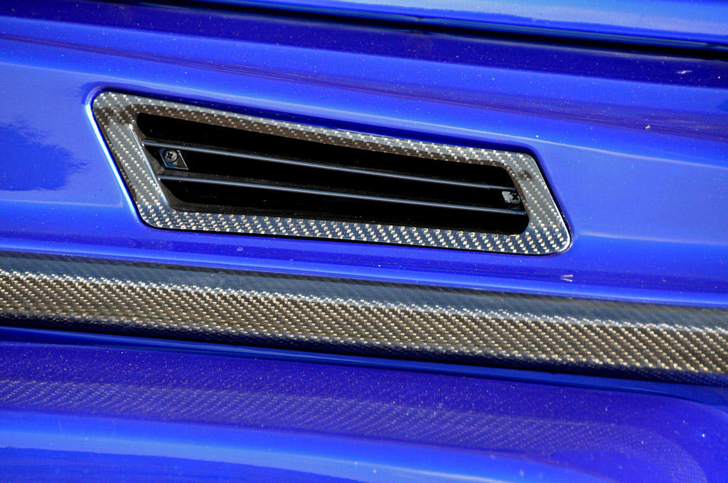 The new aerodynamics kit for the Mercedes-Benz G-Class starts out with a new, larger front bumper with integrated LED daytime running lights running beneath the headlights and at the bottom of each side of the bumper. The new unit also protrudes outwards and down with its massive air intakes and creates a more commanding road presence, especially when combined with the new carbon fiber spoiler lip. Atop the bumper setup sits a new carbon fiber hood with vents and a large power dome to show that the G-Class is large and in charge.