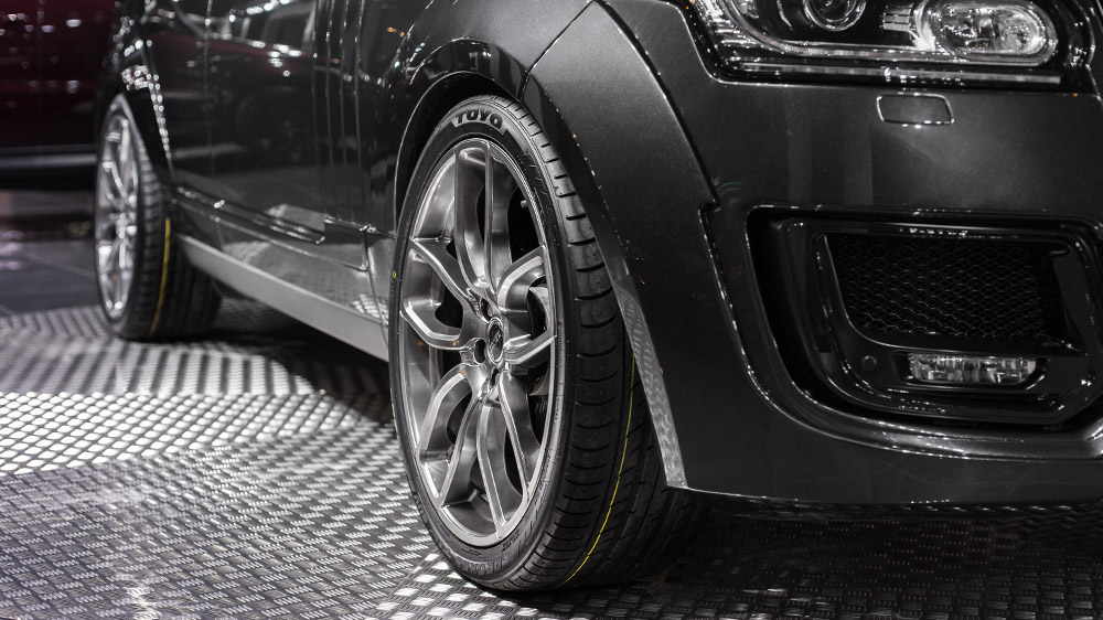 As part of the transformation, the Range Rover Vogue Pace Car by Project Kahn also proudly wears a new set of 600 LE forged wheels wearing a smooth Shadow Chrome finish that complements the Causeway Grey exterior. These 23 x 9.5 wheels are shod in 305/30/23 Continental tires and have painted brake calipers showing from behind.