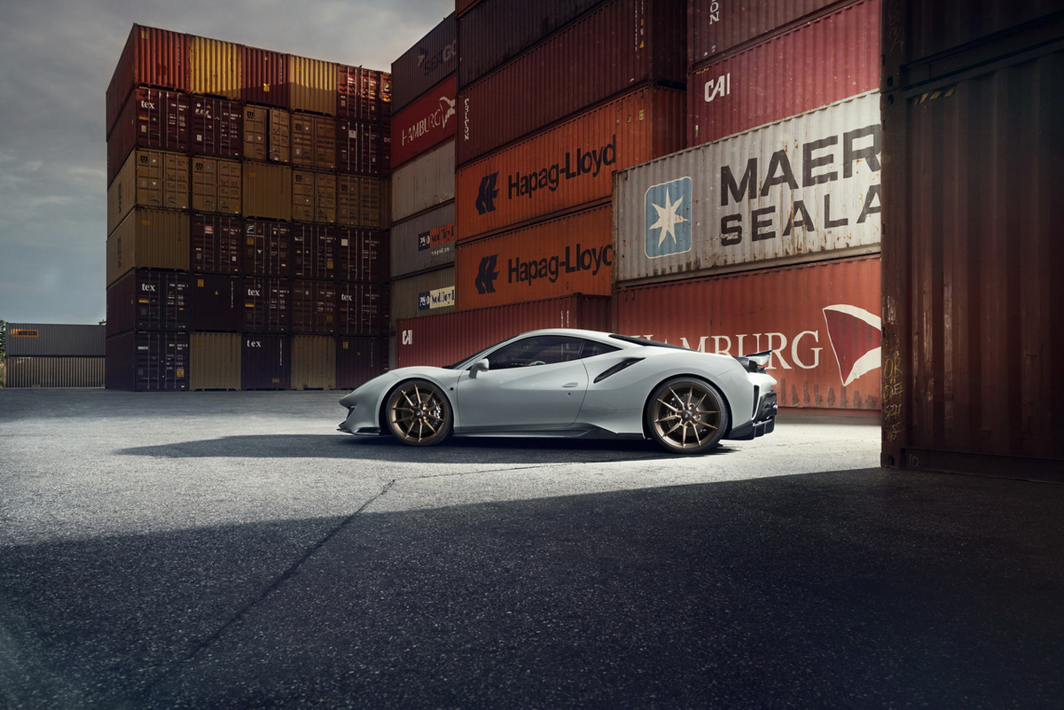 Putting that power to the pavement isn’t easy, which is why Novitec enlisted the help of Vossen to create new forged wheels. Here, the weapon of choice is the Novitec NF10 forged wheel with a five-double-spoke racing design and center-locking mechanism. For this fitment, the Novitec Ferrari 488 Pista was outfitted with the NF10 wheels in a staggered 21 x 9.0J front and 22 x 12.0J rear with 255/30 ZR21 and 335/25 ZR22 high-performance tires.
