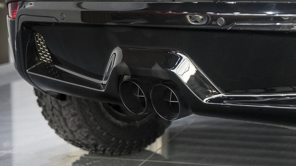 The more aggressive face on the Kahn Design Range Rover Evoque X-Lander Edition comes thanks to a new bumper with integrated fog lamps and a new nostril grille sitting above. Tougher, wider front and rear wheel arches give the SUV a more purposeful, and intimidating look. At the rear, a new bumper and diffuser combo create a clean but athletic look and house the new centrally-mounted twin cross-hair exhaust system.