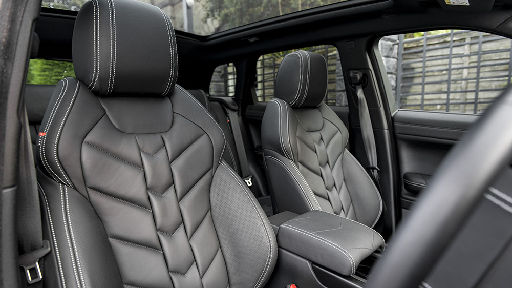Inside, the tough and purposeful exterior shifts to a more welcoming and comfortable atmosphere. Here, the Kahn Design team gave the Range Rover Evoque X-Lander Edition a bespoke Herringbone black leather interior with unique stitching patterns on the seats, dashboard, center console, and more. New branded sill plates and vented machined aluminum foot pedals make this the place to be.