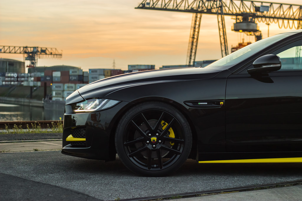 Based on the Jaguar XE, the new Arden AJ 24 takes this 3-Series competitor to the next level of performance and style. Shown here in Black with bright yellow accents, the Jaguar XE has been fitted with 19 x 8.0J Arden Sportline Black Edition wheels with 225/40 ZR19 tires. Adding to the more athletic stance is a fresh set of Arden Sport springs that cut the ride height by 30 mm and improve handling dynamics. As an option, Arden will also install wheel spacers for a wider track. For customers that want that classic Jaguar feel, Arden is now offering the iconic leaping cat figure on the hood of the sport sedan.