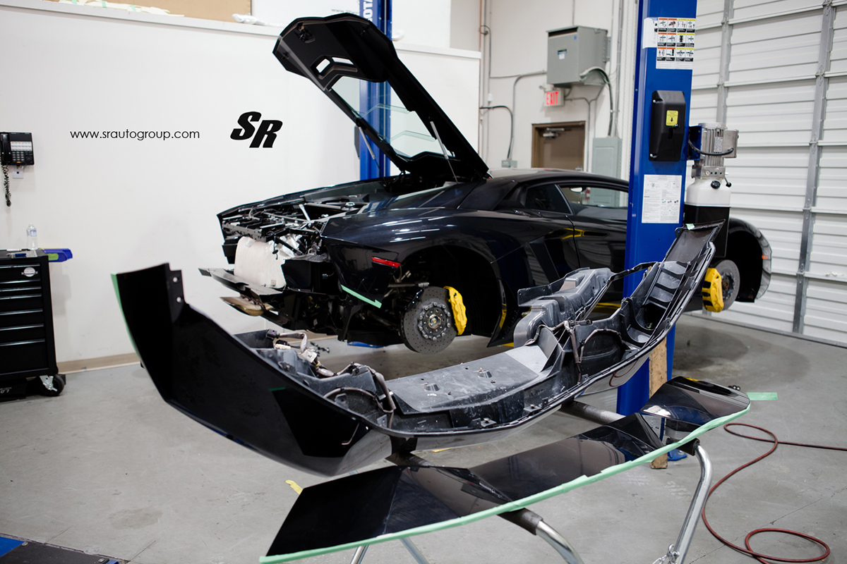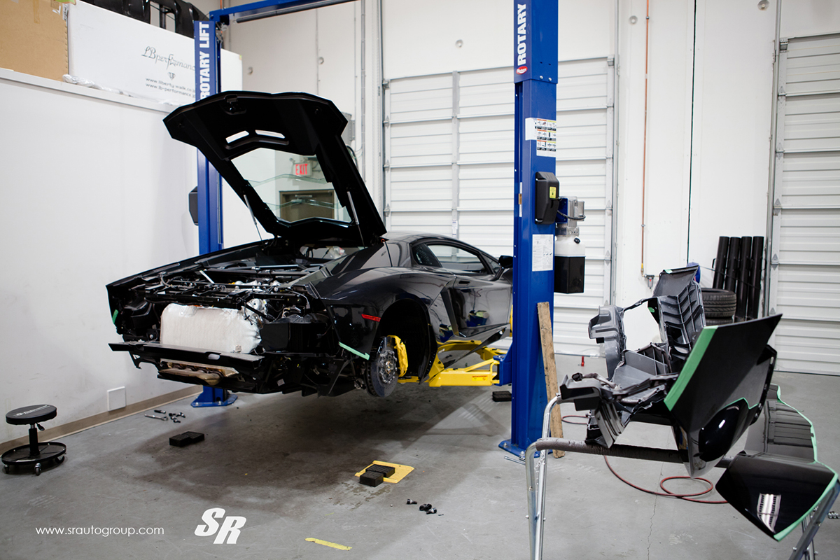 Soon after, SR Auto Group began the tear-down of the Aventador and preparation for the PUR carbon fiber Aero kit starting off with the large carbon fiber rear wing. Following the rear wing was the new carbon fiber PUR front spoiler lip, side skirts, rear spoiler, rear decklid, and rear diffuser to optimize airflow and improve the overall aerodynamic capabilities of the supercar. To stand out in the snowy environment, SR Auto Group gave the PROJECT700 Wintermode a Satin Black vinyl wrap on the entire body and a clear vinyl wrap to the carbon fiber parts to protect them from the salt and elements.