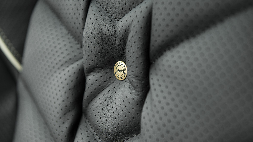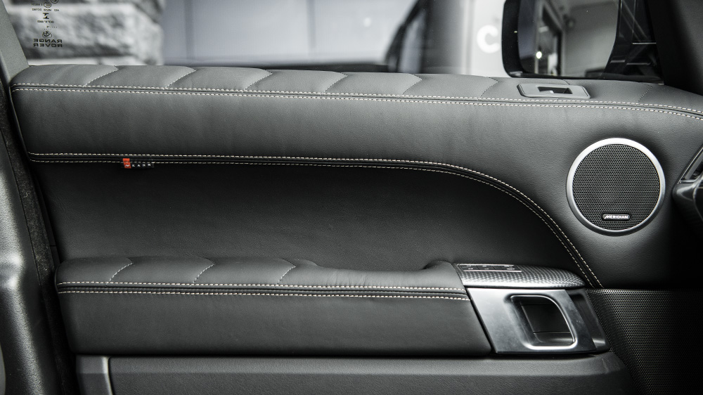Inside, the Project Kahn Range Rover Sport Autobiography Dynamic Pace Car has been outfitted with Black quilted and perforated Herringbone leather front and rear seats. Each seat also features a ‘The Road is My Catwalk’ center button, displaying founder, Afzal Kahn’s, philosophy. Craftsmen also gave the door tops, arm rests, center console, steering wheel center, and instrument binnacle a matching leather upholstery as well. Finishing off the interior upgrades are new machined aluminum foot pedals and stainless steel door entry sill plates.