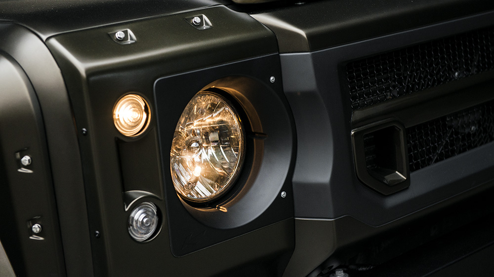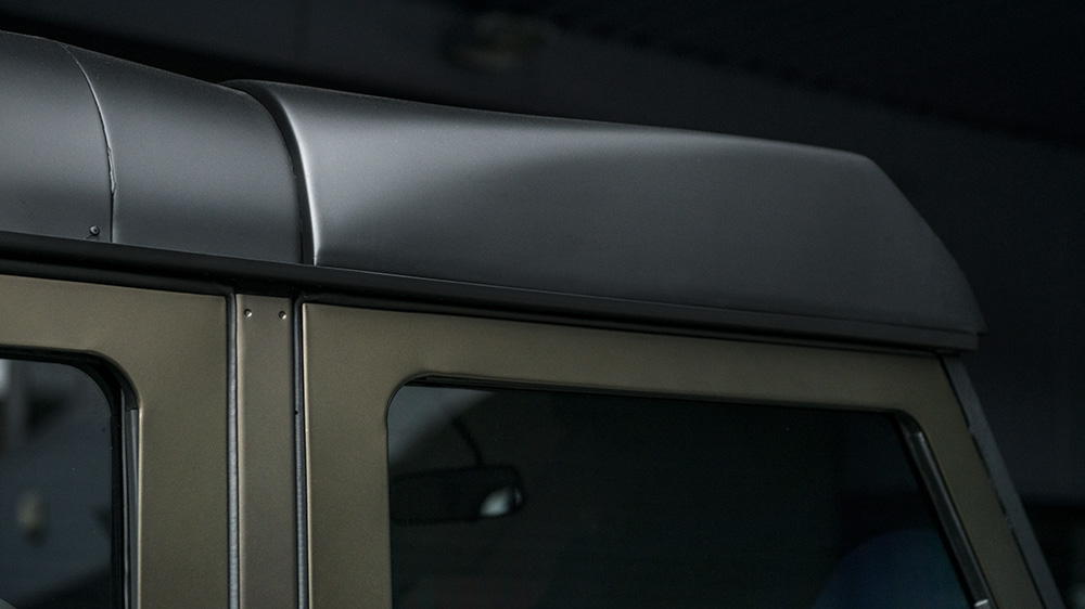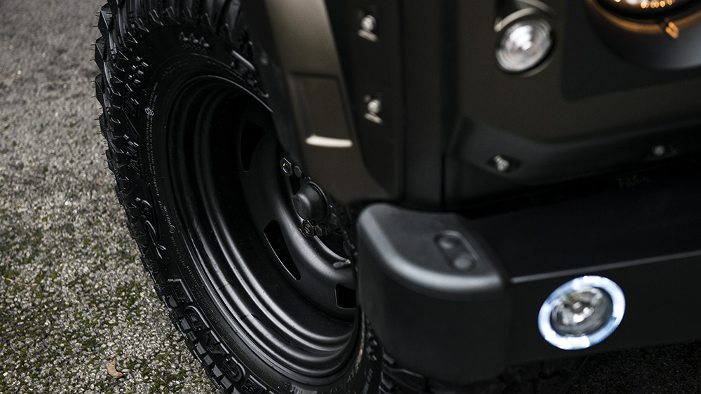Below the beltline is where things really start to get tough for the harsh terrain. The Land Rover Defender Chelsea Wide Track was outfitted with a new 2.0-inch suspension lift and lower bumper guard to overcome larger obstacles while driving off-road. A new set of Defend 68 wheels were installed in a 16 x 9.0 fitment with meaty 285/75/16 tires. These Satin Black finished wheels pair nicely with the new toughened mud flaps, the rear of which accommodate the new cross-hair exhaust outlets.
