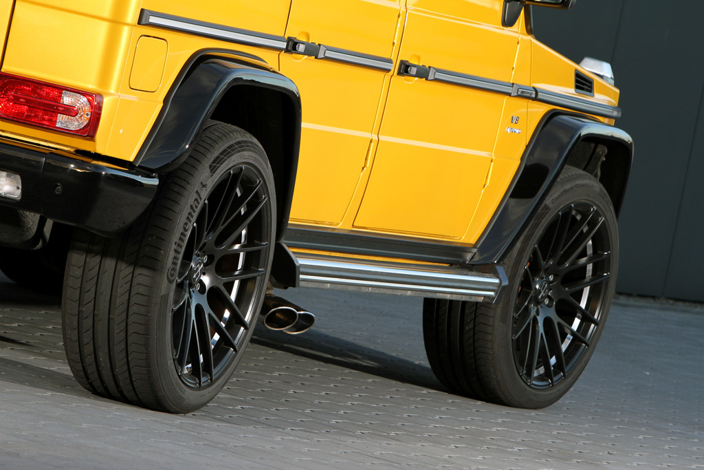 After the powertrain upgrades, Posaidon gives the G RS 850 a fresh chassis. Here, a new adaptive damping chassis gives drivers three different settings for a given situation. New Y-spoke, Black-finished 22 x 10.5 alloy wheels with 285/40 R22 high-performance tires provide plenty of contrast to the AMG Solarbeam exterior paint. Behind those wheels sit newly-installed six-piston, 420 mm carbon ceramic front and four-piston, 360 mm carbon ceramic rear brakes from the Mercedes-AMG S63 for better stopping power.