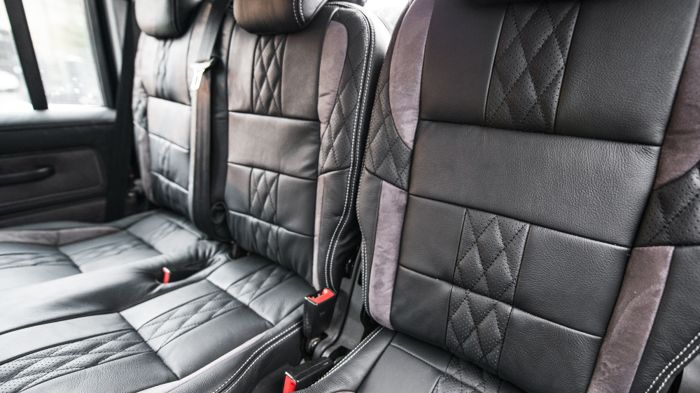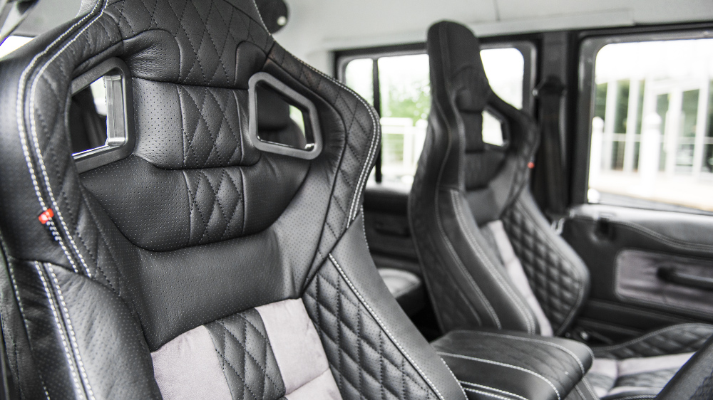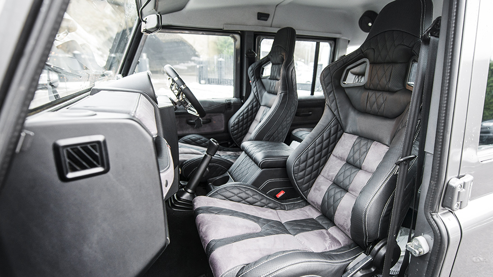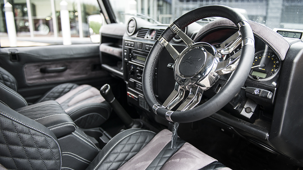 Inside, there’s even more of a contrast. Not in terms of colors, but of character. Here, the Land Rover Defender XS 110 Double Cab Pick Up Chelsea Wide Track is focused on premium luxury. Both of the front seats were replaced with Sports GTB seats covered in quilted and perforated leather. Leather also adorns the instrument binnacle and door cards while the trim detailing is in soft alcantara. Drivers benefit from a Kahn billet steering wheel, vented foot pedals in machined aluminum, and a red gauge set and Churchill time clock. Hard-wearing front and rear floor mats make sure that the dirty off-road adventures don’t ruin the cabin.