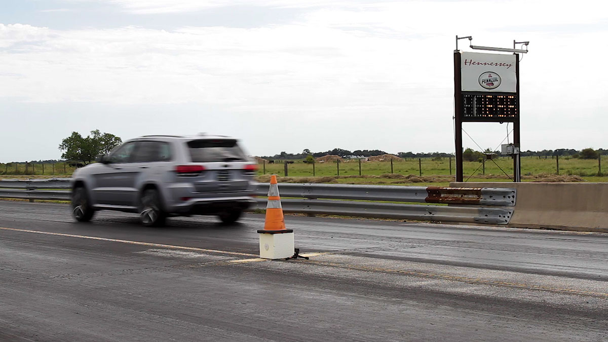 After making an official trip down the long strip of asphalt at Lonestar Motorsports Park in Sealy, Texas, the Hennessey Performance HPE1200 Jeep Grand Cherokee SRT Trackhawk was able to accelerate to 60 mph in just 2.3 seconds and blaze through the quarter-mile in just 9.66 seconds at 145 mph, making it the quickest-accelerating SUV in the world.