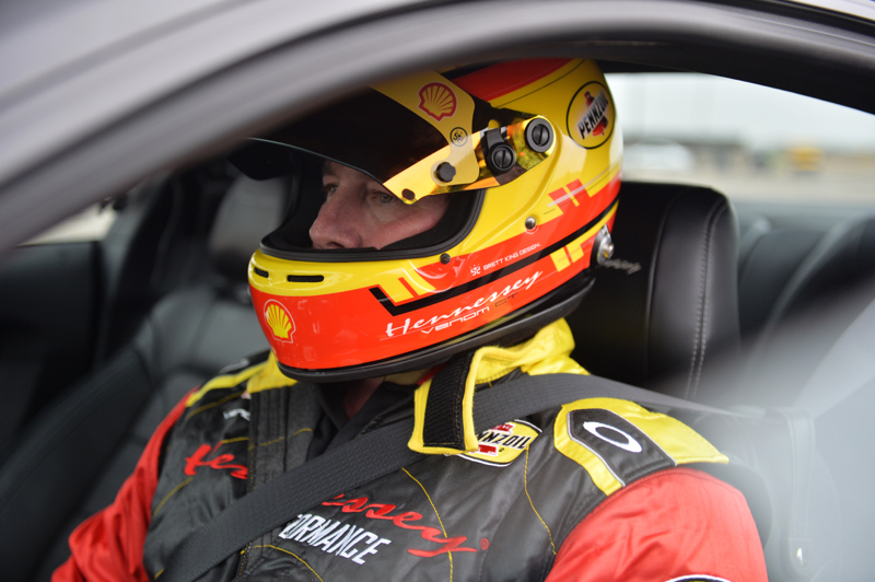 The Hennessey Performance team had been testing the HPE700 Ford Mustang on their company drag strip, but they were unable to break 130 mph due to the lack of space. So, John Hennessey and his son, JP, took John’s personal car and occasional daily driver/development car down to the Continental Tires proving ground in Uvalde, Texas to see what it could do.