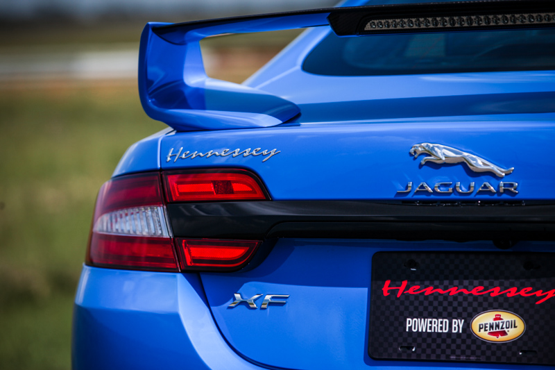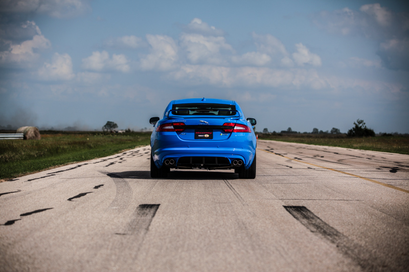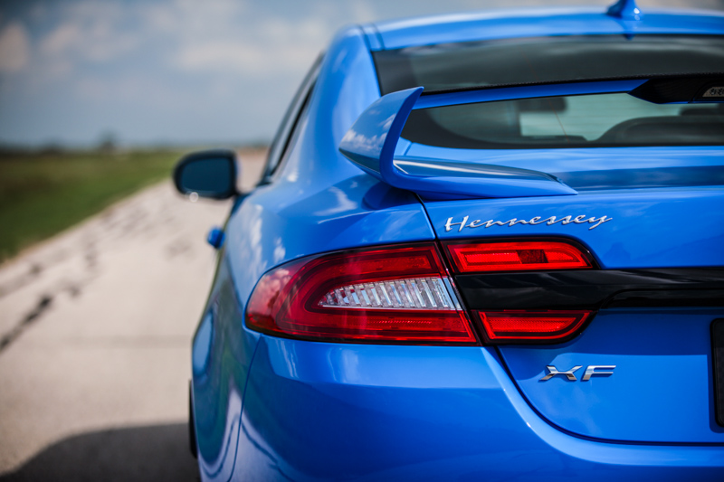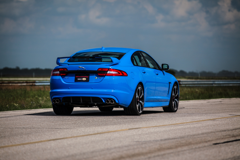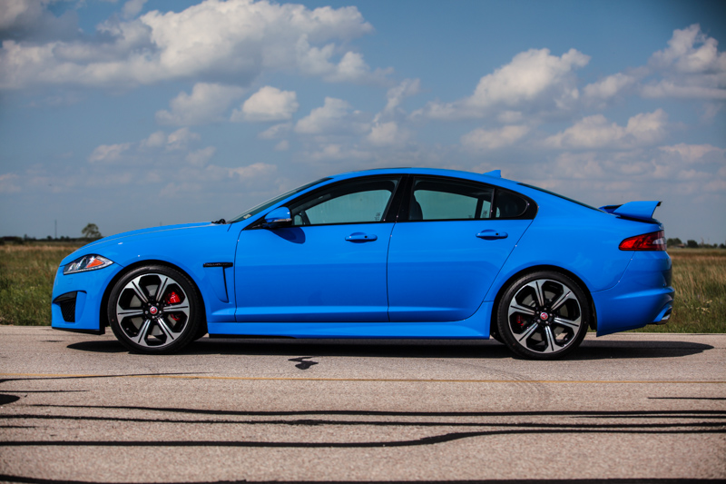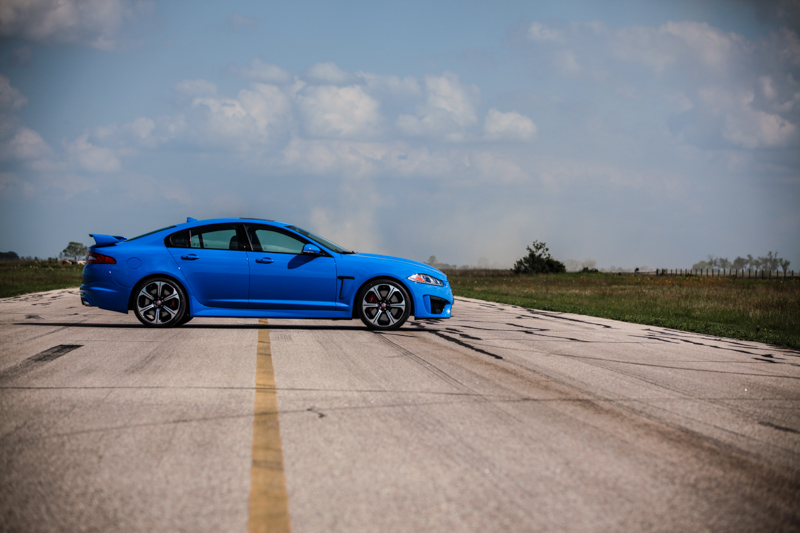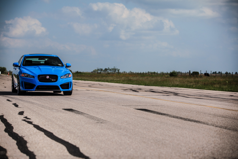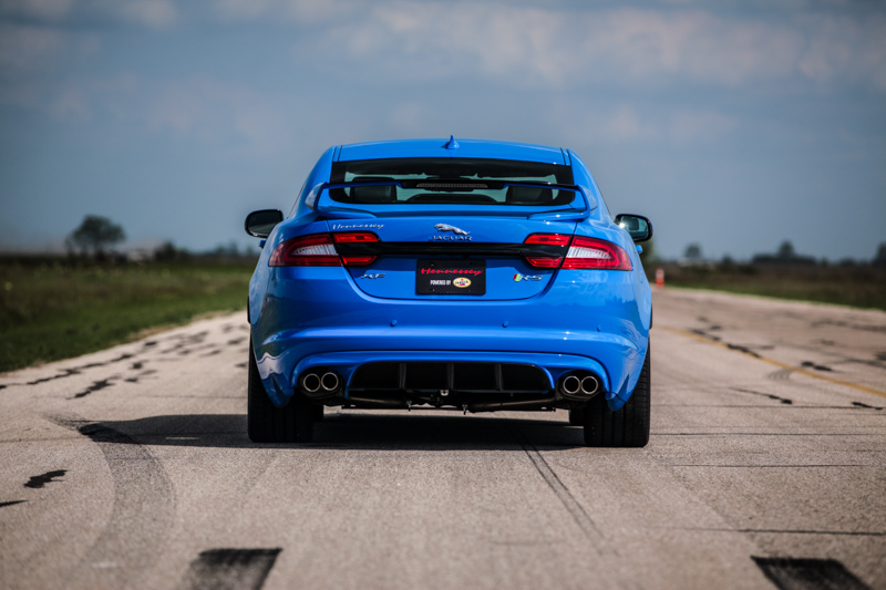 The supercharged 5.0-liter V-8 engine powering the Jaguar XFR-S and its aerodynamically-honed OEM body work is already pumped up quite a bit thanks to the factory engineers. Hennessey Performance was able to unleash even more fury thanks to their HPE650 program with modifications such as an HPE air induction modification, ECU tune, and some time on the dynometer.