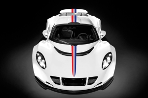 “The Venom GT is America’s supercar and it broke 270 mph on the same runway where the Space Shuttle landed at the Kennedy Space Center,” said company founder John Hennessey. “We wanted to offer a special paint scheme that would incorporate the colors of the American flag—the same flag we flew on the Space Shuttle runway. Thus, our special livery package includes a body in white with red and blue stripes.”