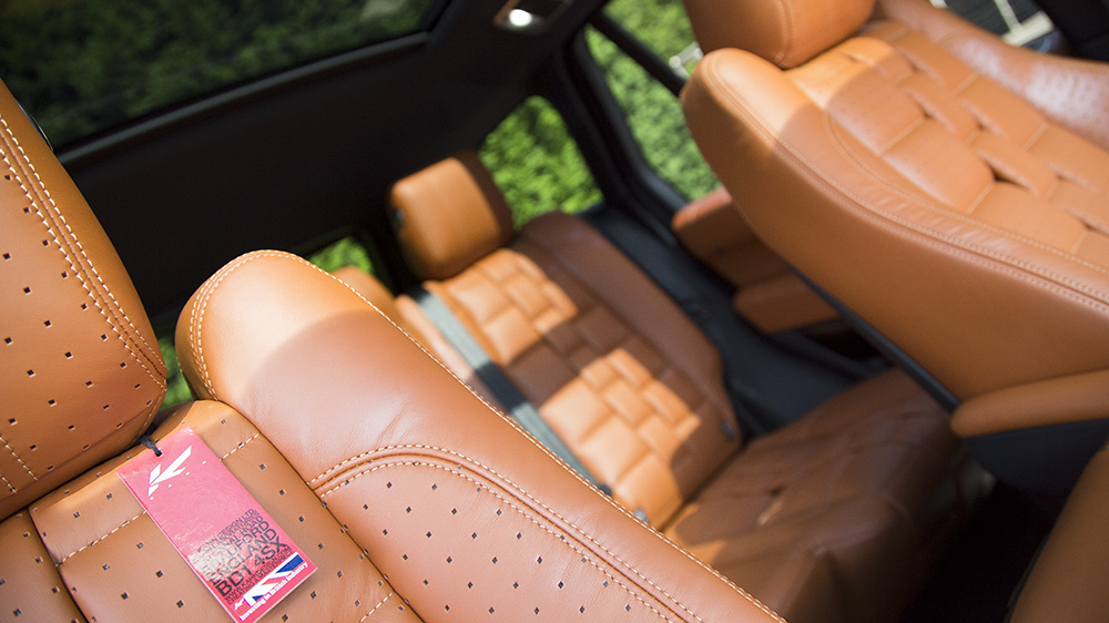 Inside, it’s all about the high-end, hand-stitched quality and comfort that we’ve all come to love and expect from the team at Project Kahn. This Range Rover RS-650 sports a soft Kahn Bridge of Weir Leather cockpit with all of the seats wearing a burnt orange hue that’s quilted and perforated. The unique leather also covers the door tops, arm rests, center console, instrument binnacle, and center portion of the steering wheel. To add to the opulent atmosphere, new stainless steel door entry sill plates and machined aluminum foot pedals were also added.