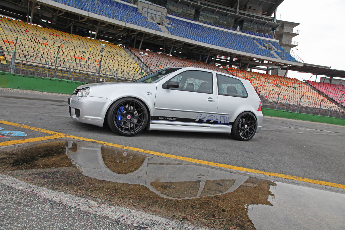 And that was only part of the story. The Volkswagen R32 was given a pair of flared front fenders to house the new set of HRE FF01 wheels in an 8.5 x 19 setup with satin black finish and corresponding sports tires. Further improving grip is a newly-installed KW Variant 2 coilover setup with H&R stabilizers on both axles.