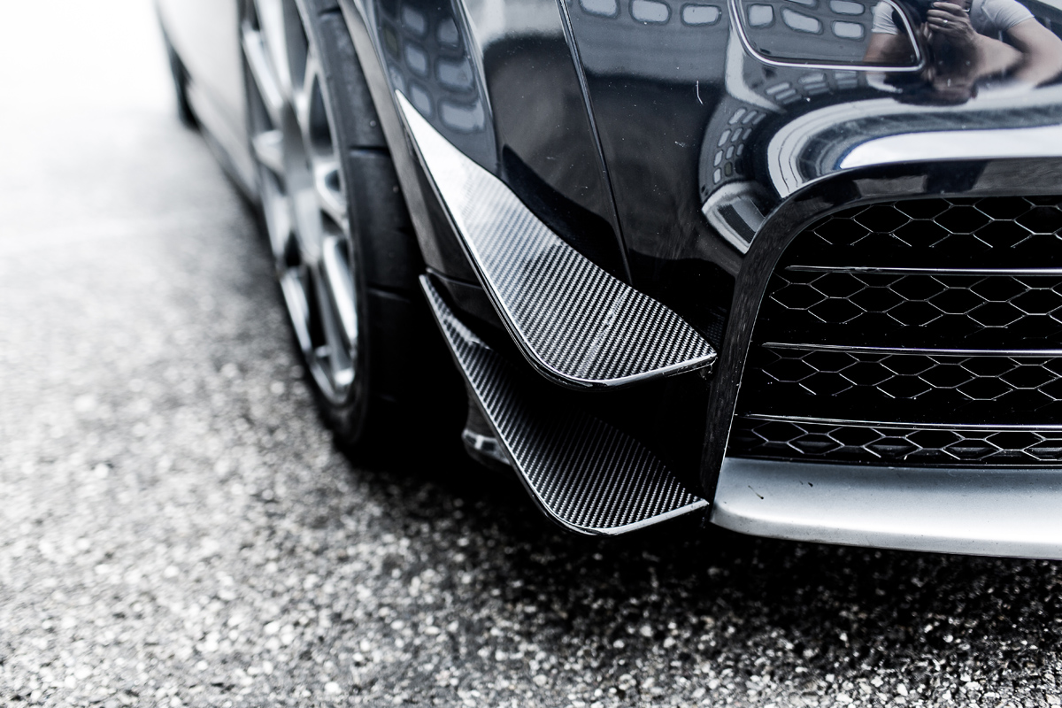To make the Audi TT-RS “Clubsport” look the part, HPerformance tacked on some lightweight carbon fiber aerodynamics. A large Clubsport front lip is flanked by lateral flaps to generate all the downforce you’ll ever need at the front axle. A large Clubsport rear wing spoiler keeps the butt planted at high speeds for better stability.