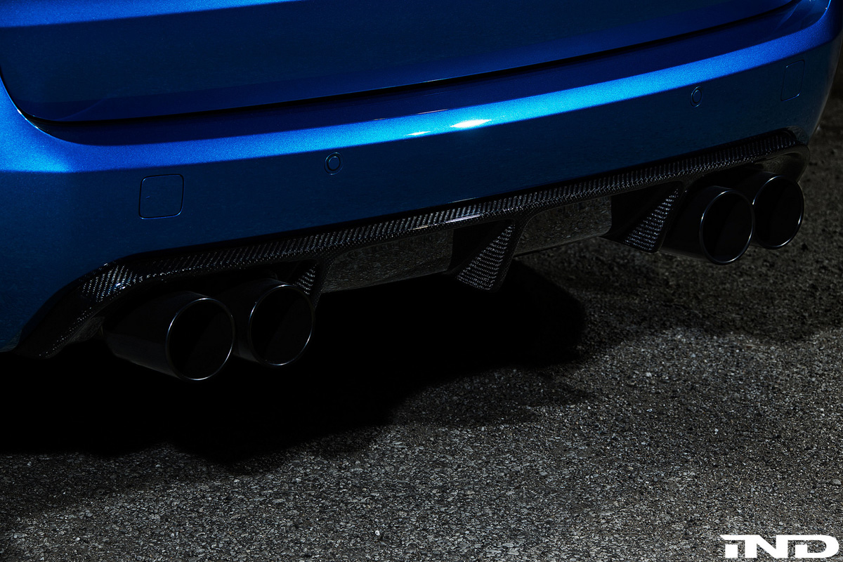 Visually, the IND BMW X5 M is bolder starting with the front fascia. Here, new RKP Carbon Fiber bumper insets and lip pair with the IND Black Chrome grilles for a more dominant presence. IND Black Chrome side grilles, trunk badge, painted front reflectors, and painted rear roundel add a darker touch. Performance can also be visually seen through the new RKP Carbon Fiber rear diffuser that integrates the Black Chrome exhaust tips.