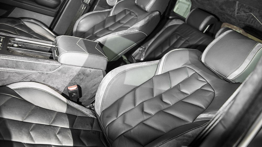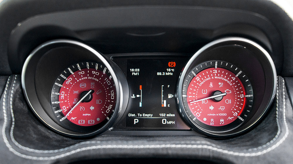 Inside the Range Rover Evoque RS250 is exactly what you’d expect from A Kahn Design – custom-tailored luxury. The seats are trimmed in perforated black nappa leather with alcantara highlights. Perforated black nappa leather also adorns the center glove box while the transmission tunnel and headliner have been trimmed with alcantara and woven contrast stitching. A diamond gear selector, red gauges, machined and vented aluminum pedals, and discreet Kahn badging set the SUV in a class of its own.
