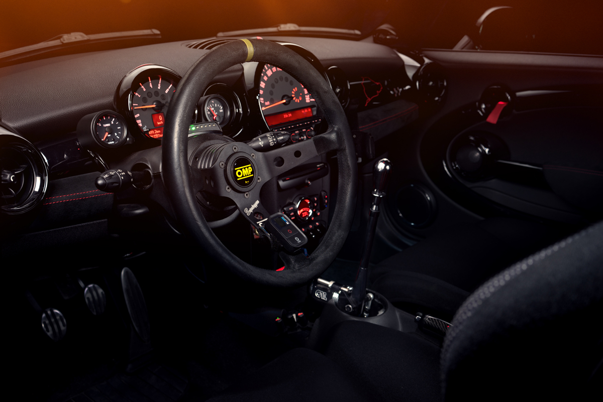 Elsewhere, the MINI JCW was equipped with supportive Recaro SPG XL seats with Schroth Profi 3FE six-point harnesses, a CAE-Ultra shifter, and OMP Ultraleggero steering wheel, and Wiechers Clubsport rollover bar. The entire exterior was then wrapped by Chamshaft Premium Car Wrapping.