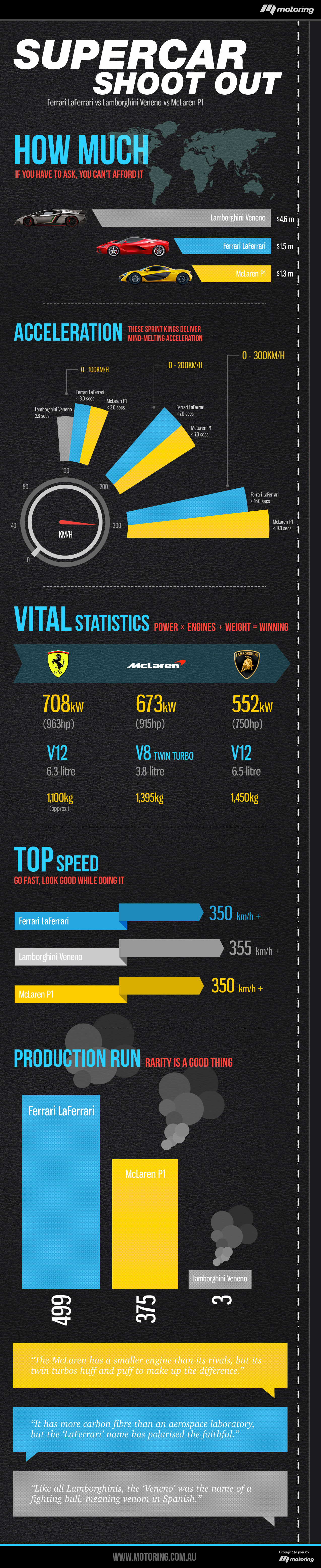 So which one is best? Well, thanks to the folks at Motoring, we now have an infographic that compares all three of the new hyper cars together so that we can pick which one is the best. It can’t be that hard, right?