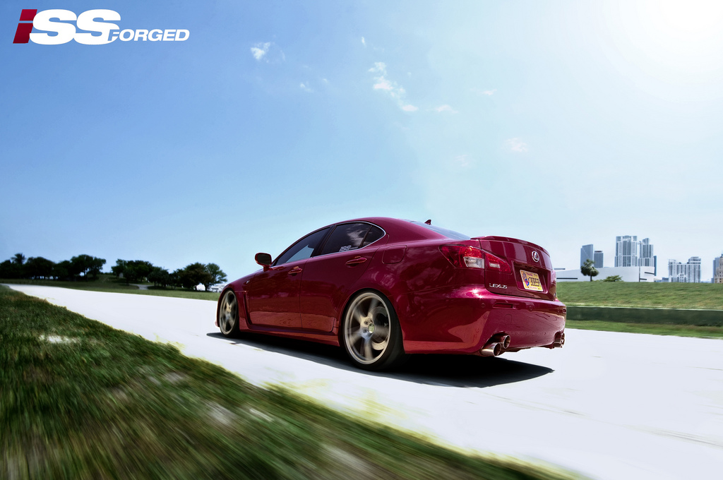 The Lexus IS-F is already a well-built performance car from the factory. ISS however has given the bad boy a wider footprint and much nicer shoes. Back in my retail days when I would fit wheels on vehicles, I would practice a simple principle: Perfect Form + Perfect Fit + Purpose = Perfect Fitment (of course, there were always those clients that went against recommendations and wanted spinners on a Maxima – and trust me, they’d end up with spinners).