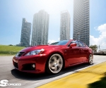 The perfect form was established with the recently introduced OneForged 01. The five-spoke design of the OneForged 01 made a perfect aesthetic match to the curves of the IS-F, while the Titanium Pearl finish nicely complimented the factory Matador Red Mica.