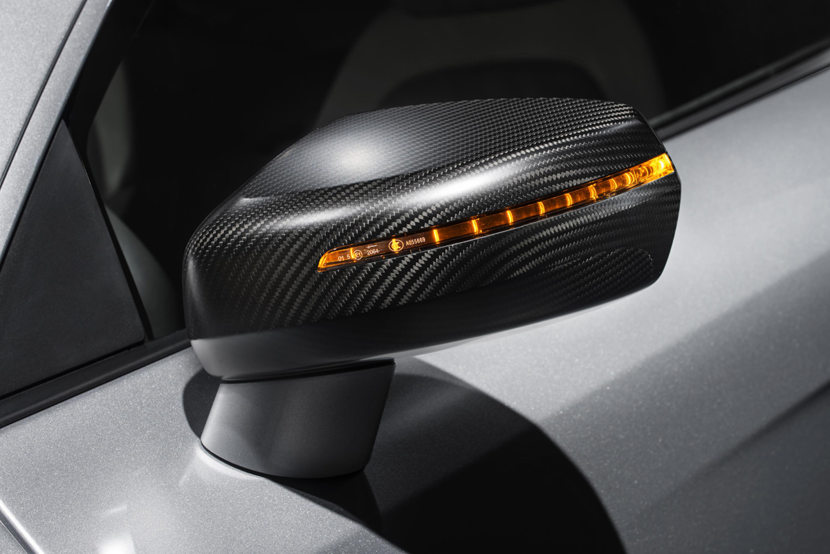 But the new 2015 Audi R8 Competition is more than just a powerful engine; there’s a whole assortment of carbon fiber going on that cuts weight. Matte carbon fiber makes up the large fixed rear spoiler, side flics, front spoiler, rear diffuser, side mirrors, and engine bay to optimize aerodynamics and set itself apart from the rest of the pack. New, specially-designed five-spoke gloss black wheels with 305-sized tires hide the fade-free ceramic brakes with anodized red brake calipers that provide ultimate stopping power.