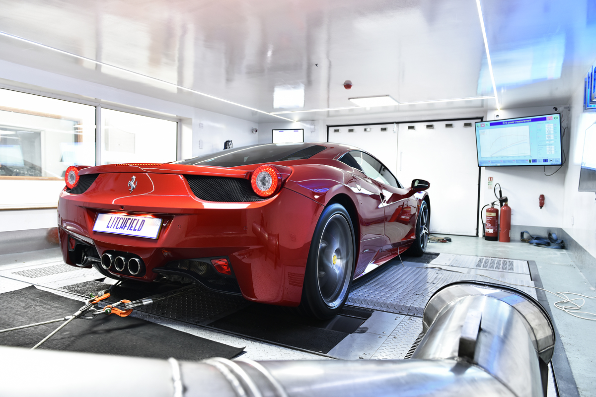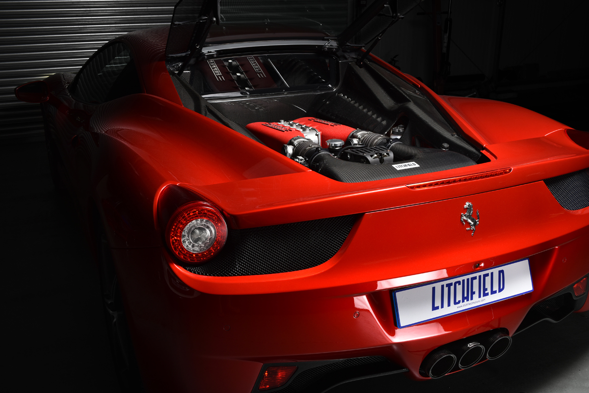 The new Litchfield Ferrari 458 Italia upgrade program with software tune, Akrapovic exhaust, brake lines, and alignment is currently available for £11,995.00 ex VAT.