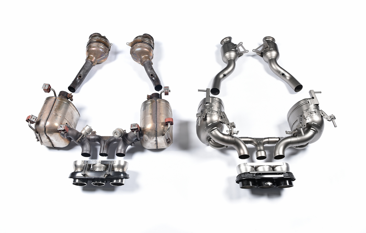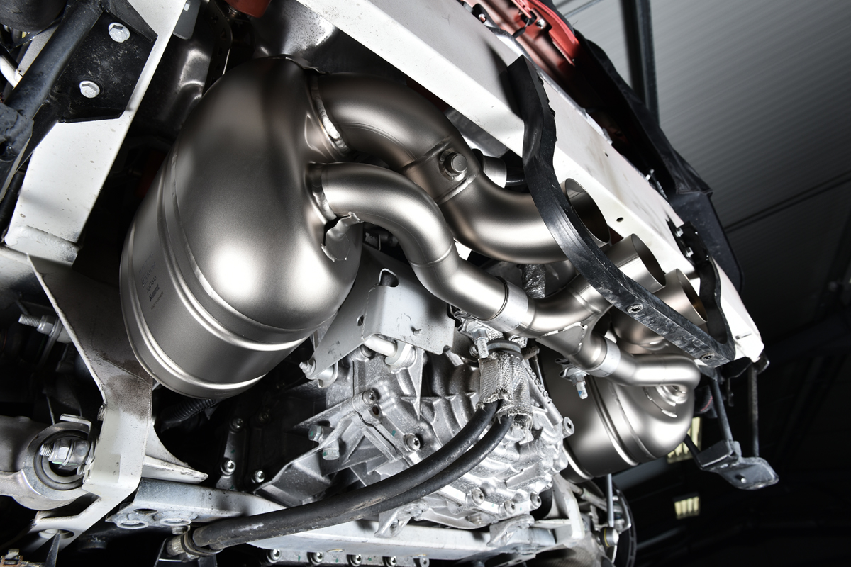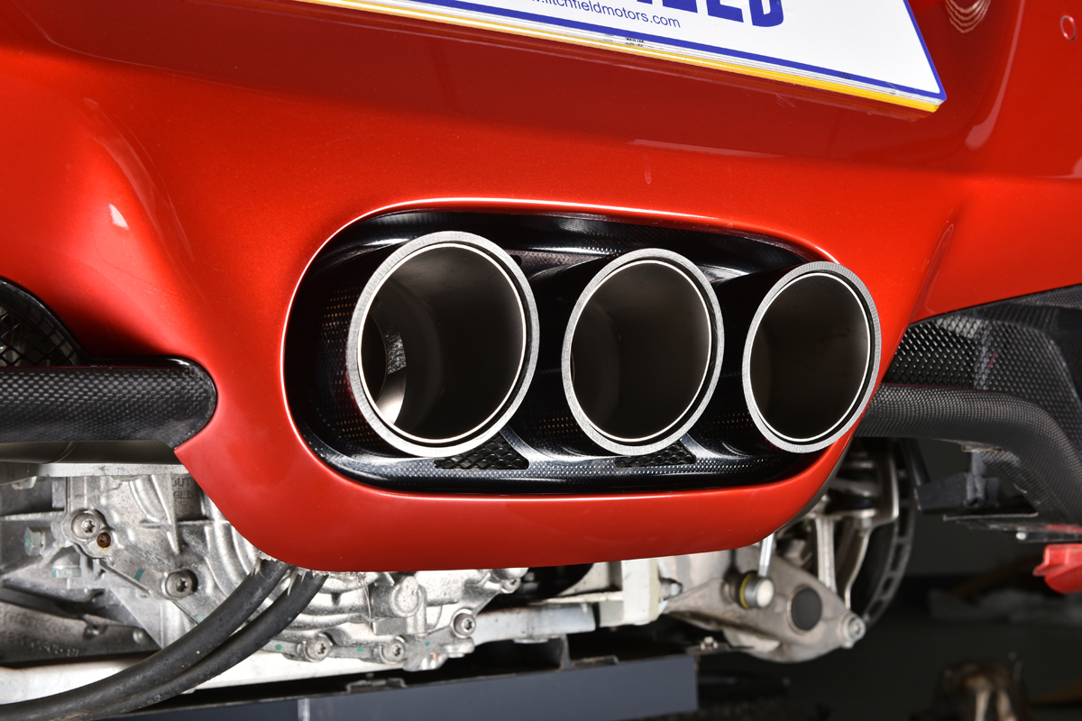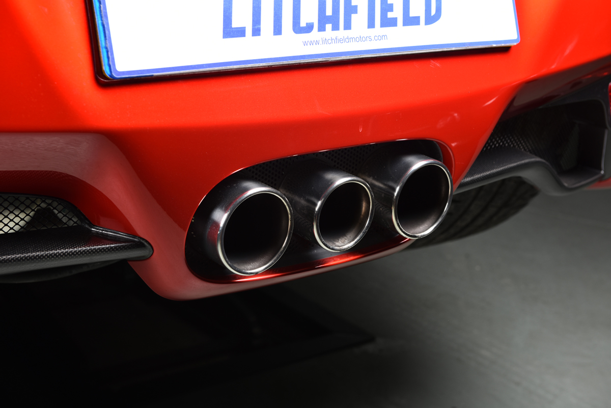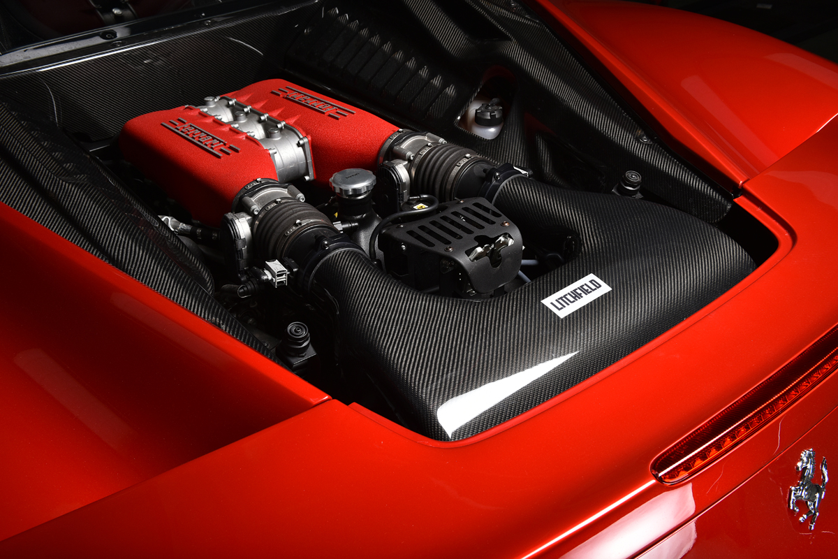 The goal for Litchfield was to create a program that improved performance in all areas for customers. They started out with the vocal chords for the high-revving 4.5-liter V-8 engine. The Maranello monster was given an Akrapovic exhaust system that weighs 31.3 lbs. less than the factory setup and features CNC mandrel-bent pipes that reduce backpressure. The exhaust was also paired up with a software tune that helps create a total of 551 horsepower output.