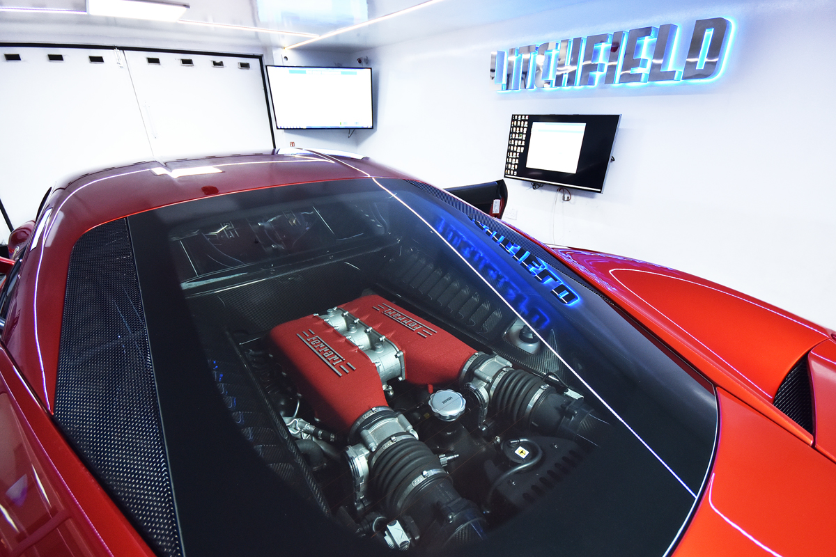 With the engine of the 458 Italia churning out thunder, the Litchfield team then went to work on the chassis. Here, they developed a new precision alignment using the same technicians that have worked with different Time Attack, sprint, race, and drag races that took home the checkered flag. The ‘fast road’ alignment ensures that each tire has maximum contact patch and gives drivers optimum steering and chassis geometry for superb handling.
