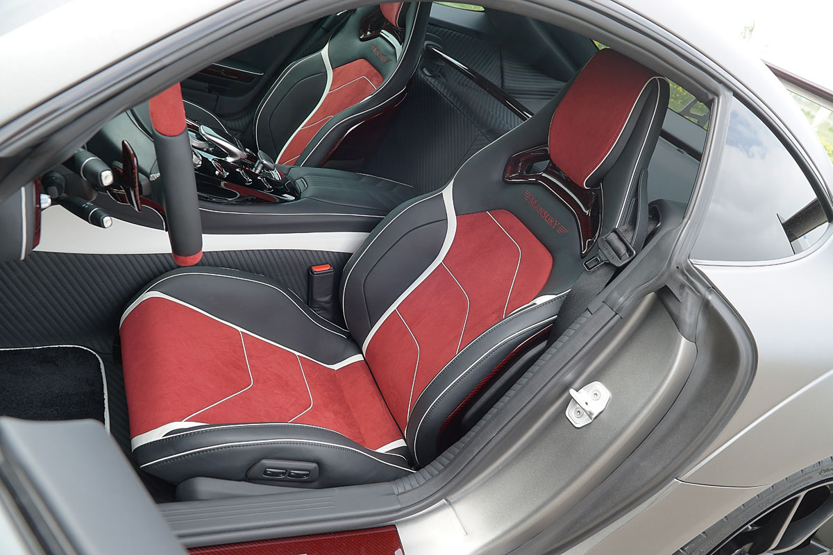 The high-end tastes of the car’s owner can be seen throughout the cockpit. Here, Mansory gave the Mercedes-AMG GT S a specially-designed sports steering wheel with carbon inlay and new sports pedals for better driving engagement. Just about every furnishing was handcrafted in leather and Mansory carbon fabric with embroidered logos for an attention-to-detail that is second-to-none. Completing the redesign are new illuminated door sills to greet driver and passenger.